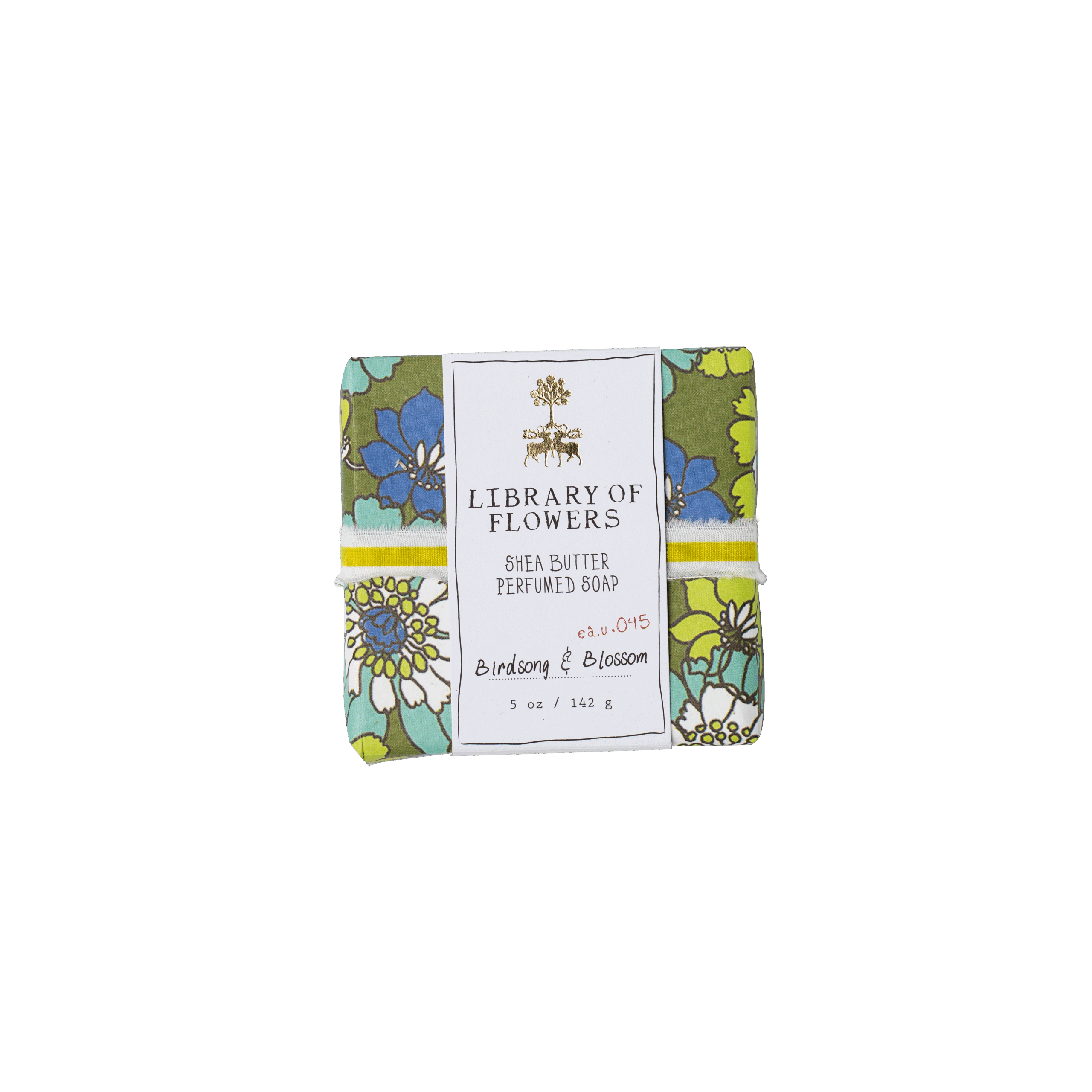 Each soap is debossed with the signature Library of Flowers crest, then artfully wrapped in one of 10 vibrant and playful botanical patterns. A citron-striped ribbon ties it all together, while a touch of copper foil adds an eye-catching shine.