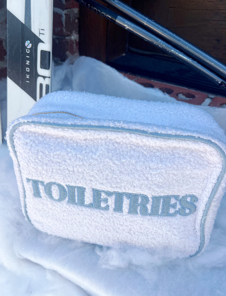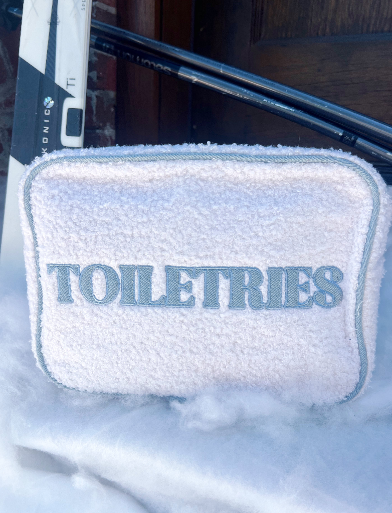 Toiletries XL – this denim + sherpa combo is TOO DIE FOR!