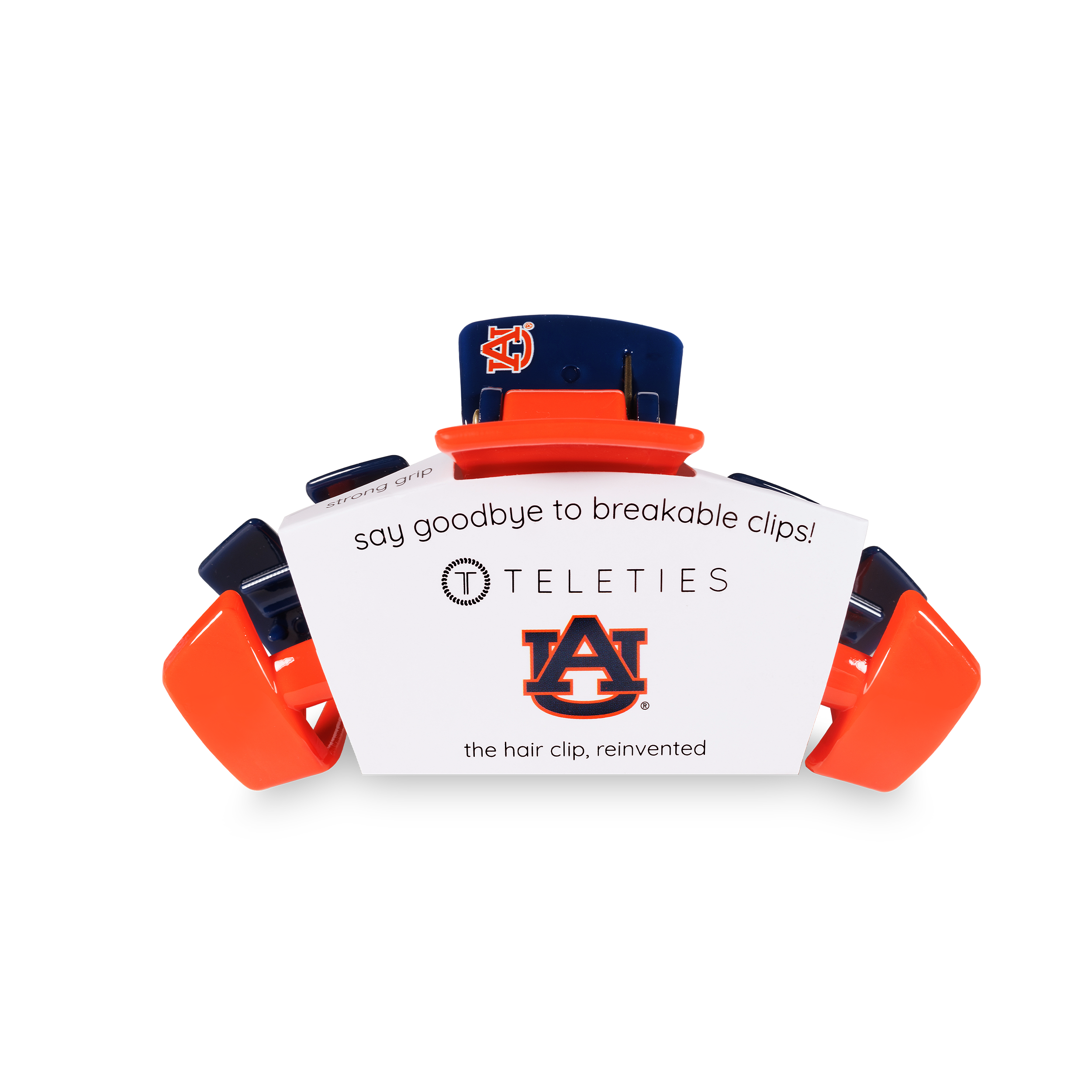 Say goodbye to breakable clips! We have perfected the hair tie and now have re-invented the clip. Each hair clip has bendable teeth that take back to shape, they work on all hair types and have a strong hold. Hold your hair and enhance your style with the new Auburn University TELETIES hair Clip! War Eagle!