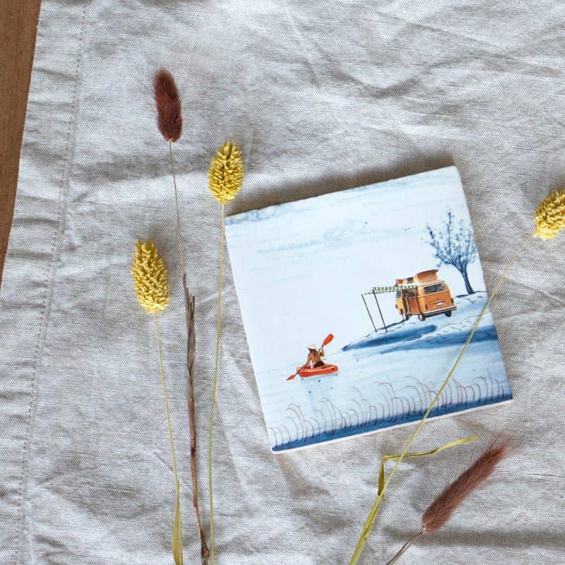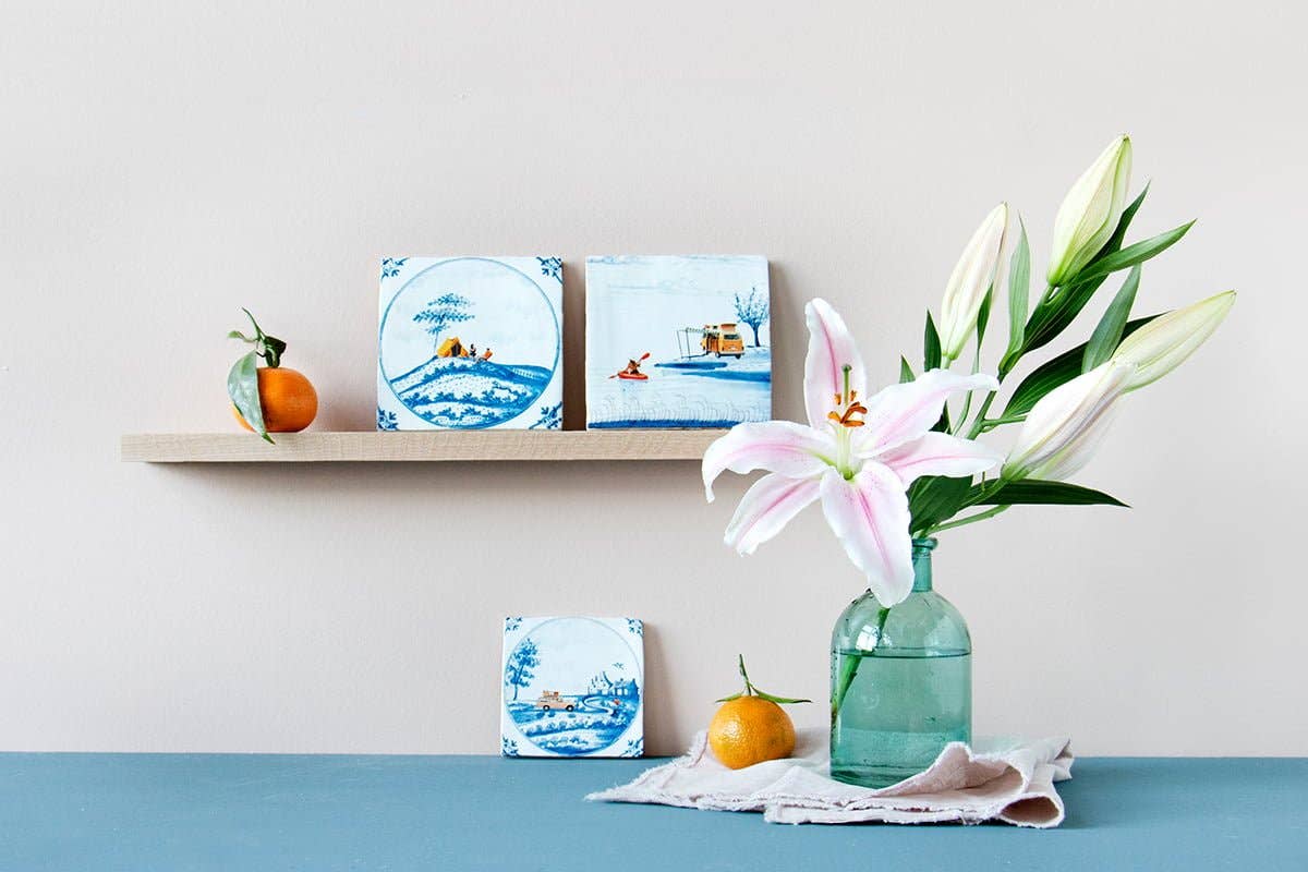 This is a perfect spot! Let’s launch the canoe and go for a nice boattrip. Ceramic tiles have been made in and around Delft, The Netherlands, since the 16th century. StoryTiles continues the tradition by creating miniature art-on-tiles. All tiles are baked in traditional Dutch ovens at a high temperature, what makes them heat and water resistant. Each design is unique, as it is hand baked and designed. The delicate art pieces come in very cool cardboard packaging, with a nifty hanging system.Almost all StoryTiles are available in three sizes:Small: 10 x 10cm Medium: 13 x 13cm* Large: 20 x 20cm *This size is equivalent to the original Dutch tile.