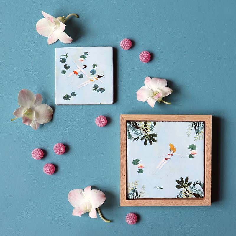 Me-time. I will fill this day with relaxation and the things I was longing for the whole week. Like floating around in this lovely lake! Ceramic tiles have been made in and around Delft, The Netherlands, since the 16th century. StoryTiles continues the tradition by creating miniature art-on-tiles. All tiles are baked in traditional Dutch ovens at a high temperature, what makes them heat and water resistant.