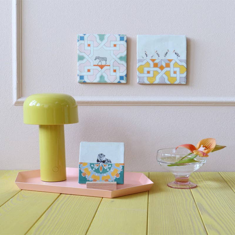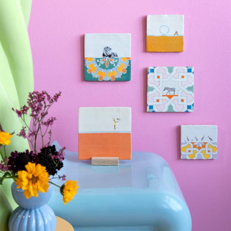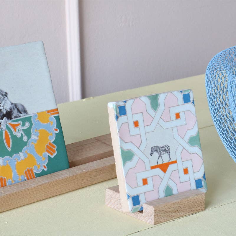 Have you spotted the zebra yet? With the beautiful stripes, the appearance of this animal is a feast for the eye. Ceramic tiles have been made in and around Delft, The Netherlands, since the 16th century. StoryTiles continues the tradition by creating miniature art-on-tiles. All tiles are baked in traditional Dutch ovens at a high temperature, what makes them heat and water resistant. Each design is unique, as it is hand baked and designed. The delicate art pieces come in very cool cardboard packaging, with a nifty hanging system. Almost all StoryTiles are available in two sizes: Small: 10 x 10cm Medium: 13 x 13cm* *This size is equivalent to the original Dutch tile.