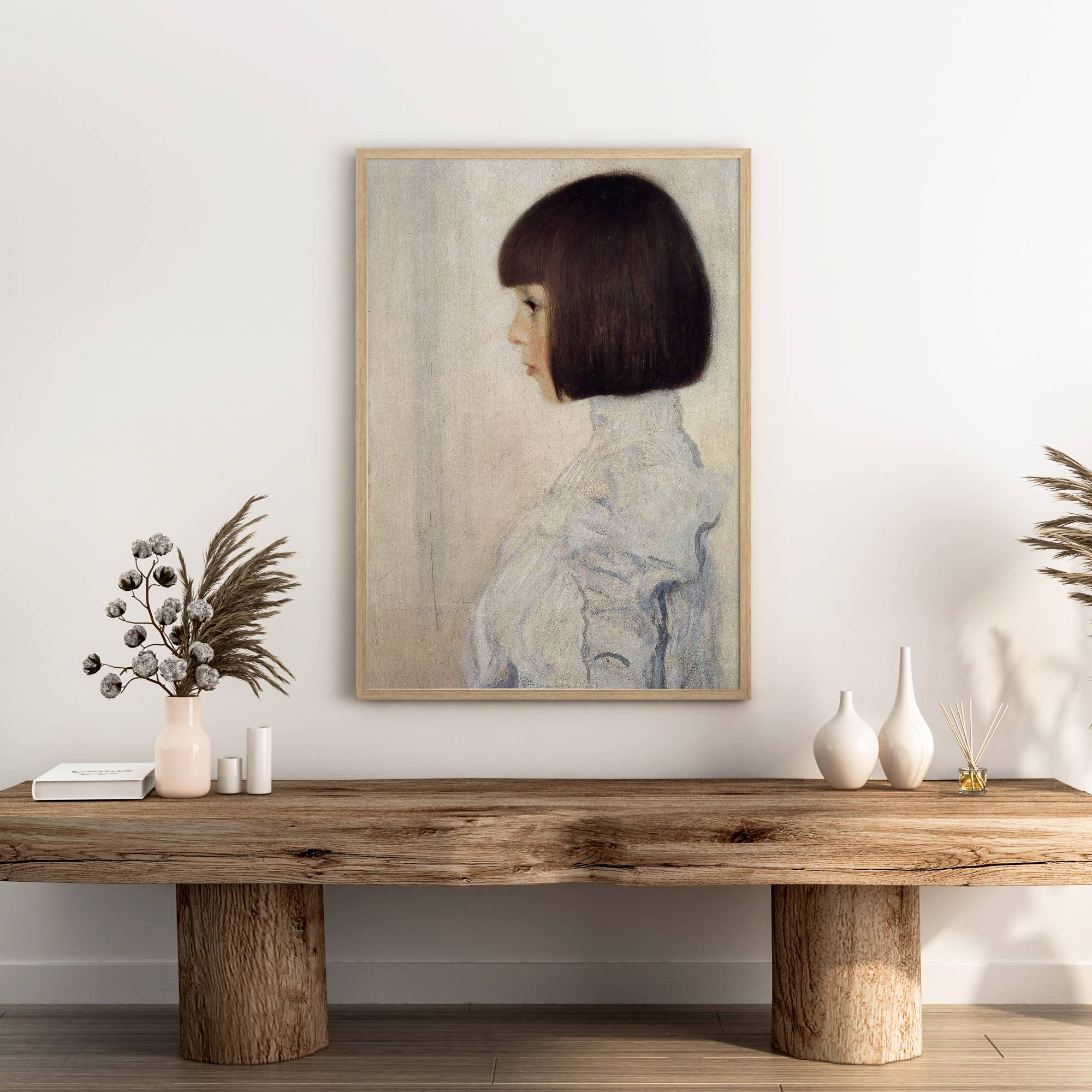 Portrait of Helene Klimt Gustav Klimt Oil Painting Wall Art Print, Vintage European Rustic Woman Girl Portrait Poster Moody Farmhouse