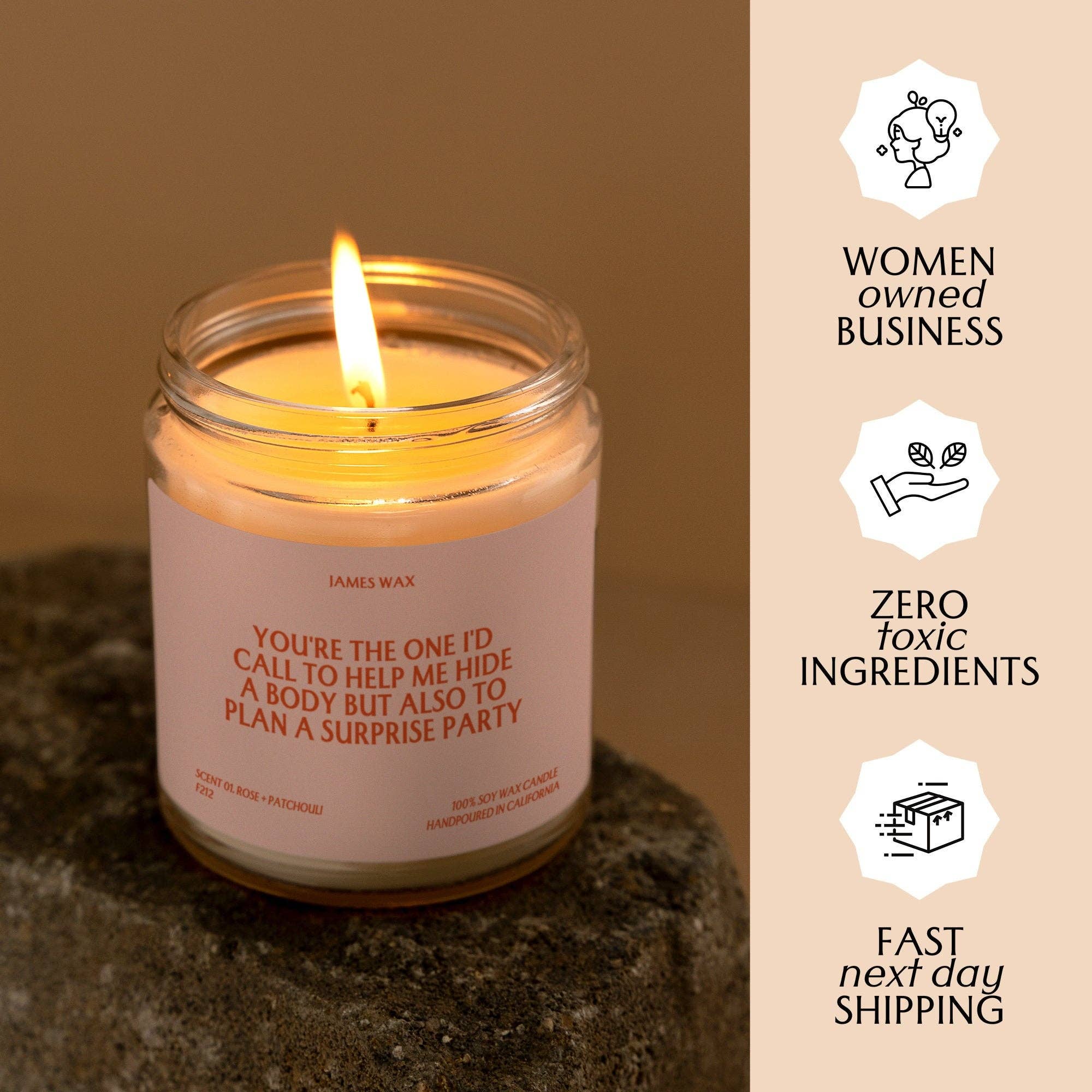Here, you’ll discover over 500+ funny and unique candles, all proudly made in California. As a woman-owned business, we pour each candle in our own studio, creating small batches every day to ensure top-notch quality. Our candles are perfect for every occasion, from birthdays and weddings to housewarmings and holidays, adding a special flair to any celebration.