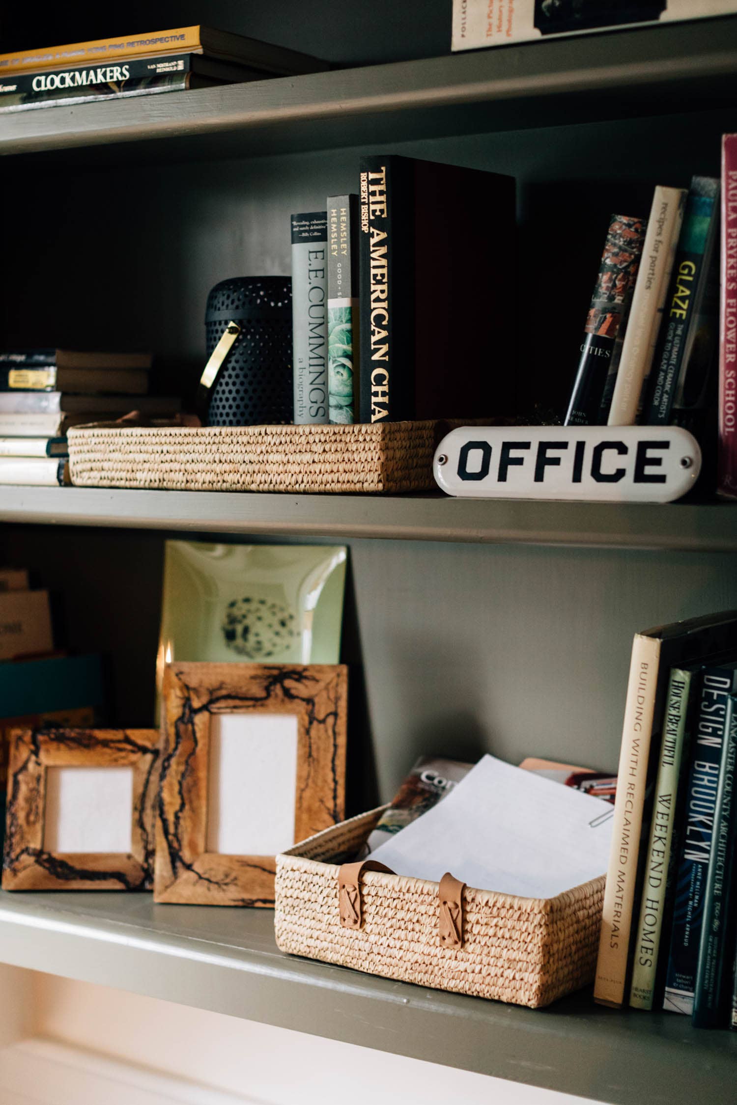 Date palm leaves and leather – Wipe with damp cloth – Overall: 14.5L x 11W x 2.5H inches; Internal dimensions: 13.5L x 9.75W x 2.25H inches; Handles: approximately 10.25L (end to end) x 7L (not including leather tab portions sewn to basket) x 0.75W inches – Two tan leather handles attached to the short sides of the basket (one on each side) – Handcrafted in Bangladesh