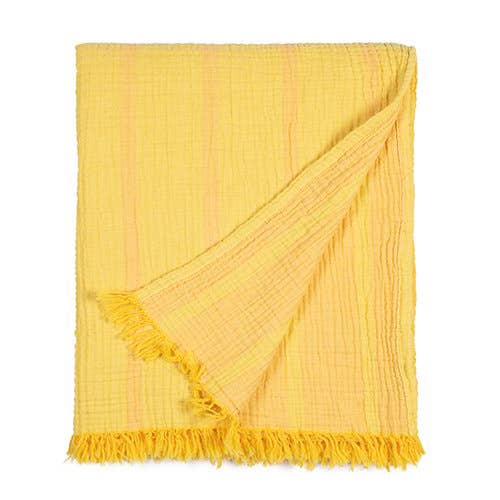 Introducing our luxurious Crinkle Gauze Muslin Cotton Blend Throw, a perfect fusion of style, comfort, and quality. Crafted with care in the textile-rich region of Turkey, these throw blankets are designed to elevate your home decor and provide you with the ultimate cozy experience.