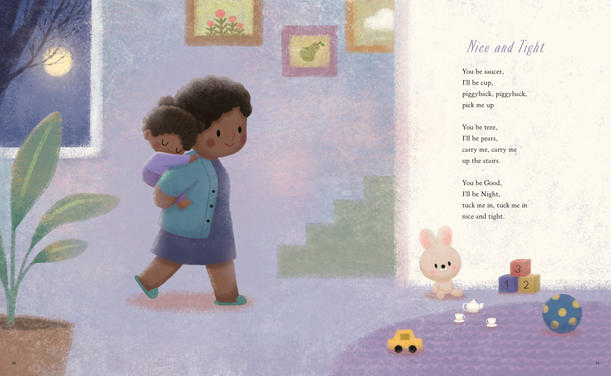 “You be the tree, I’ll be the pears, carry me, carry me, up the stairs.”