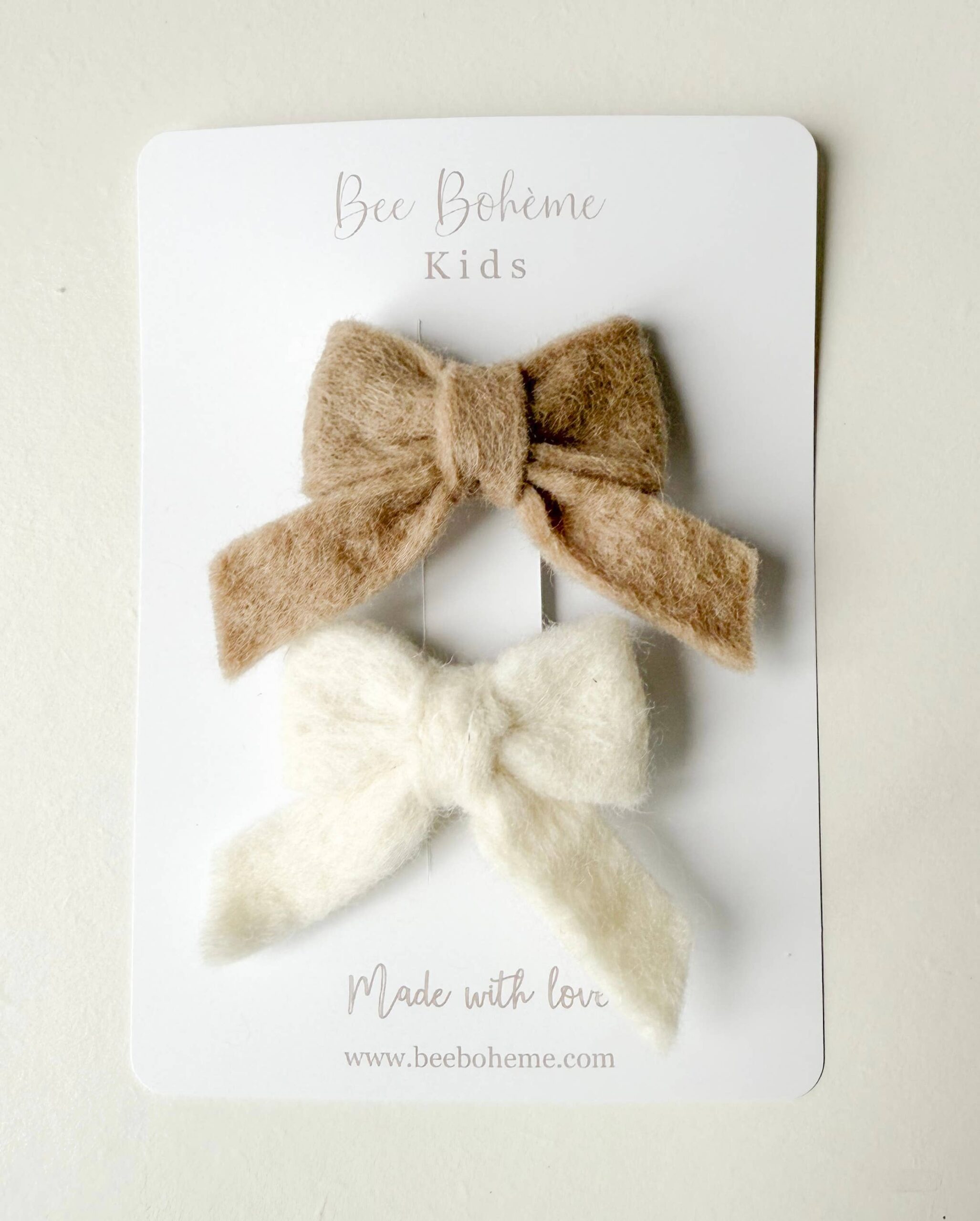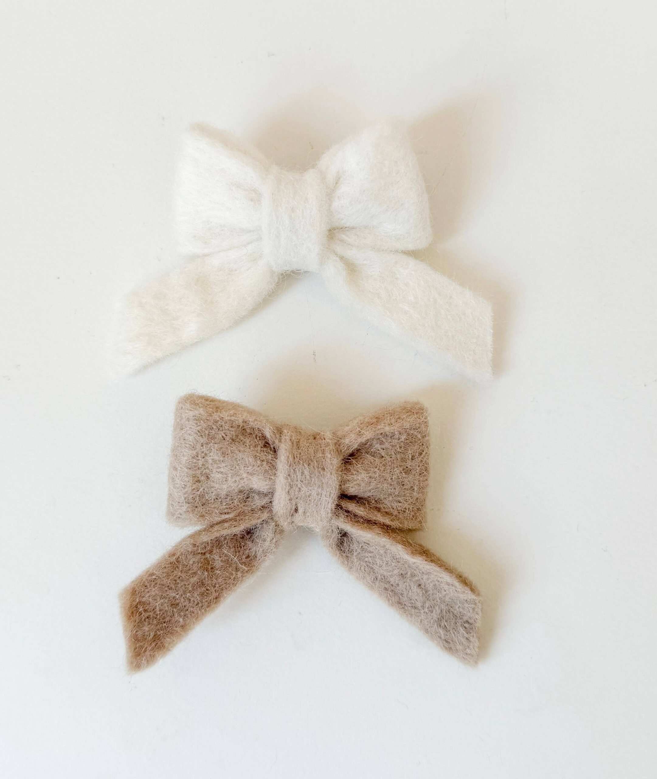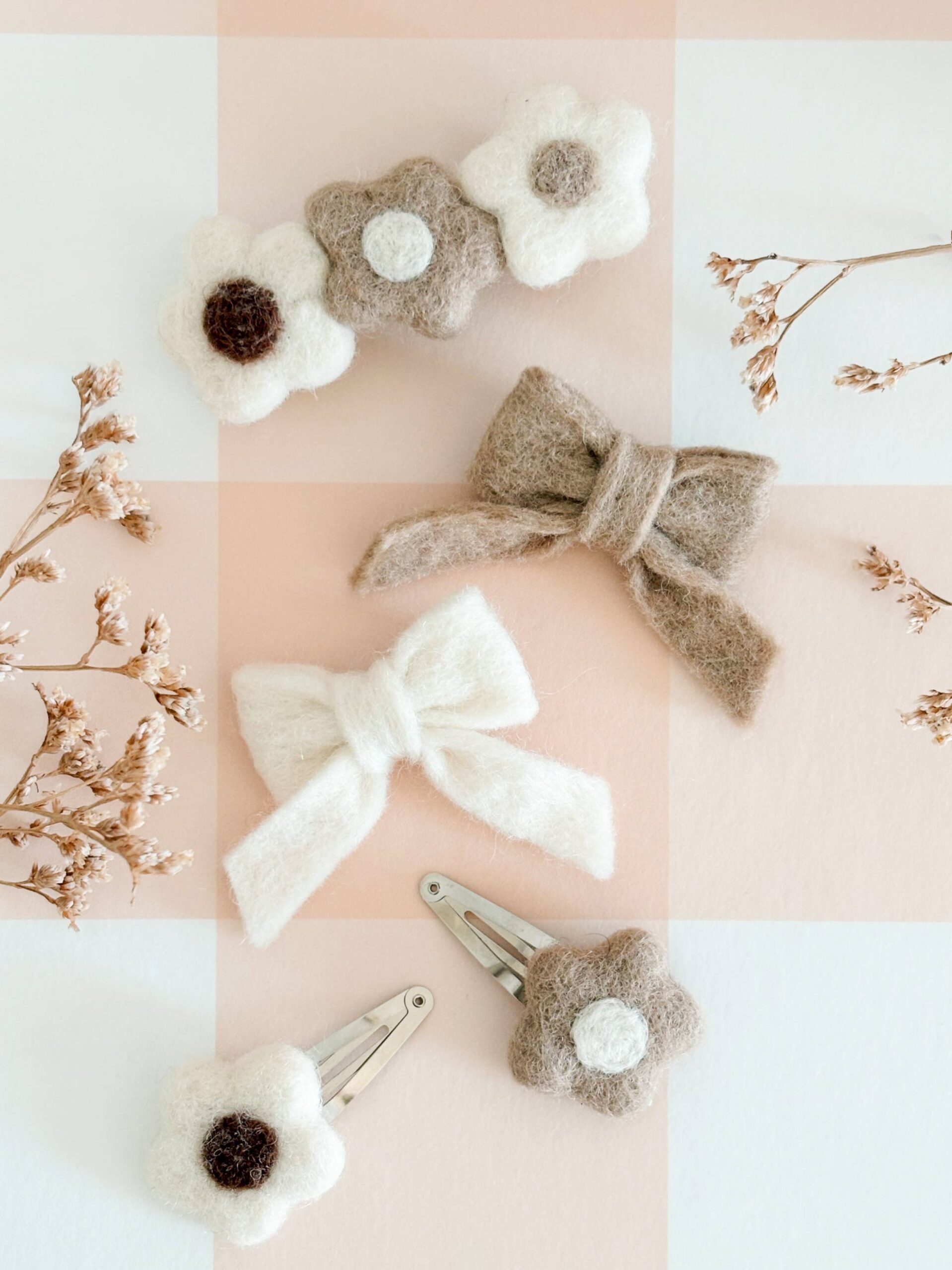 Duo of Felted Wool Hair Clips – Ecru & Beige