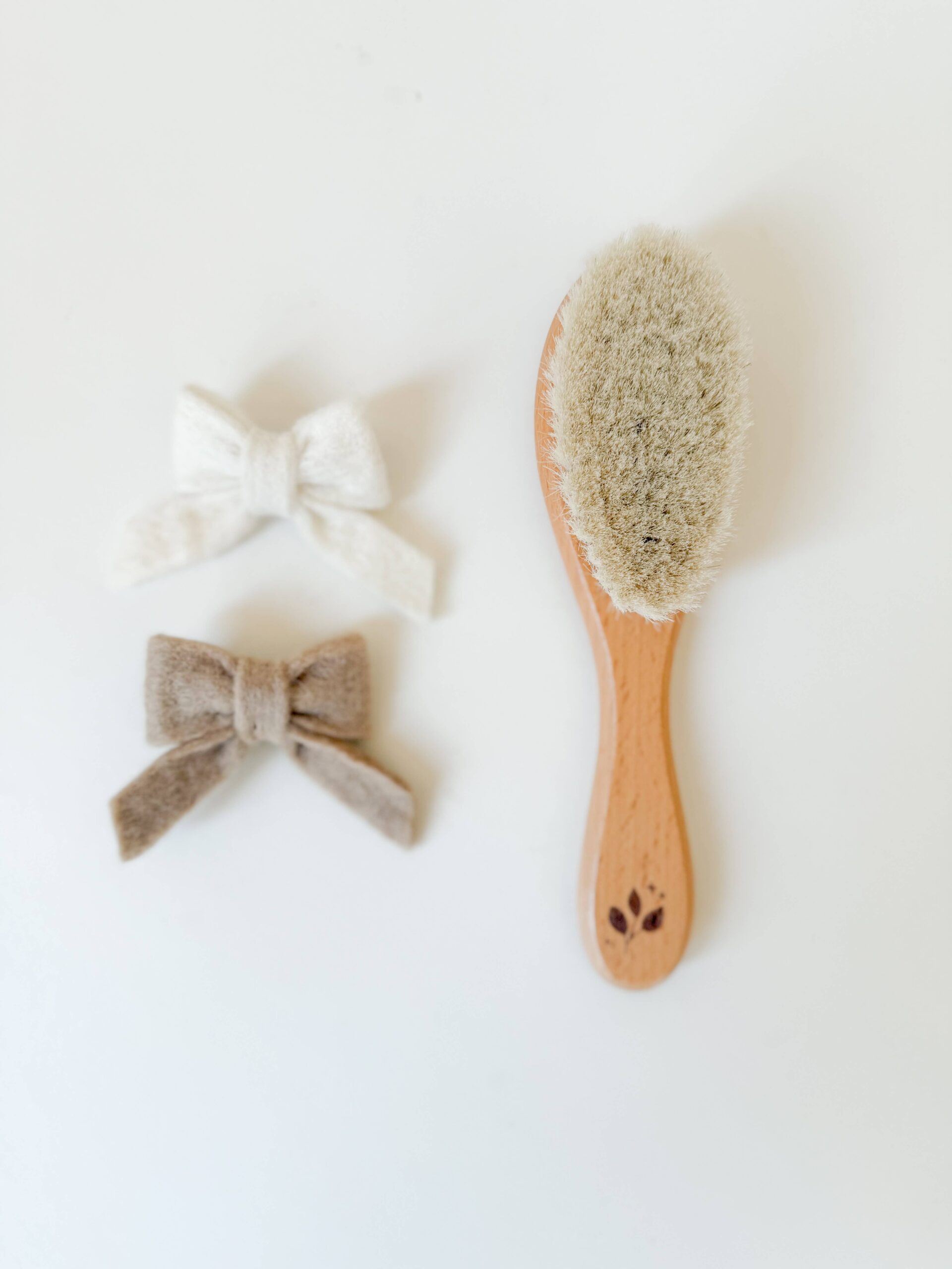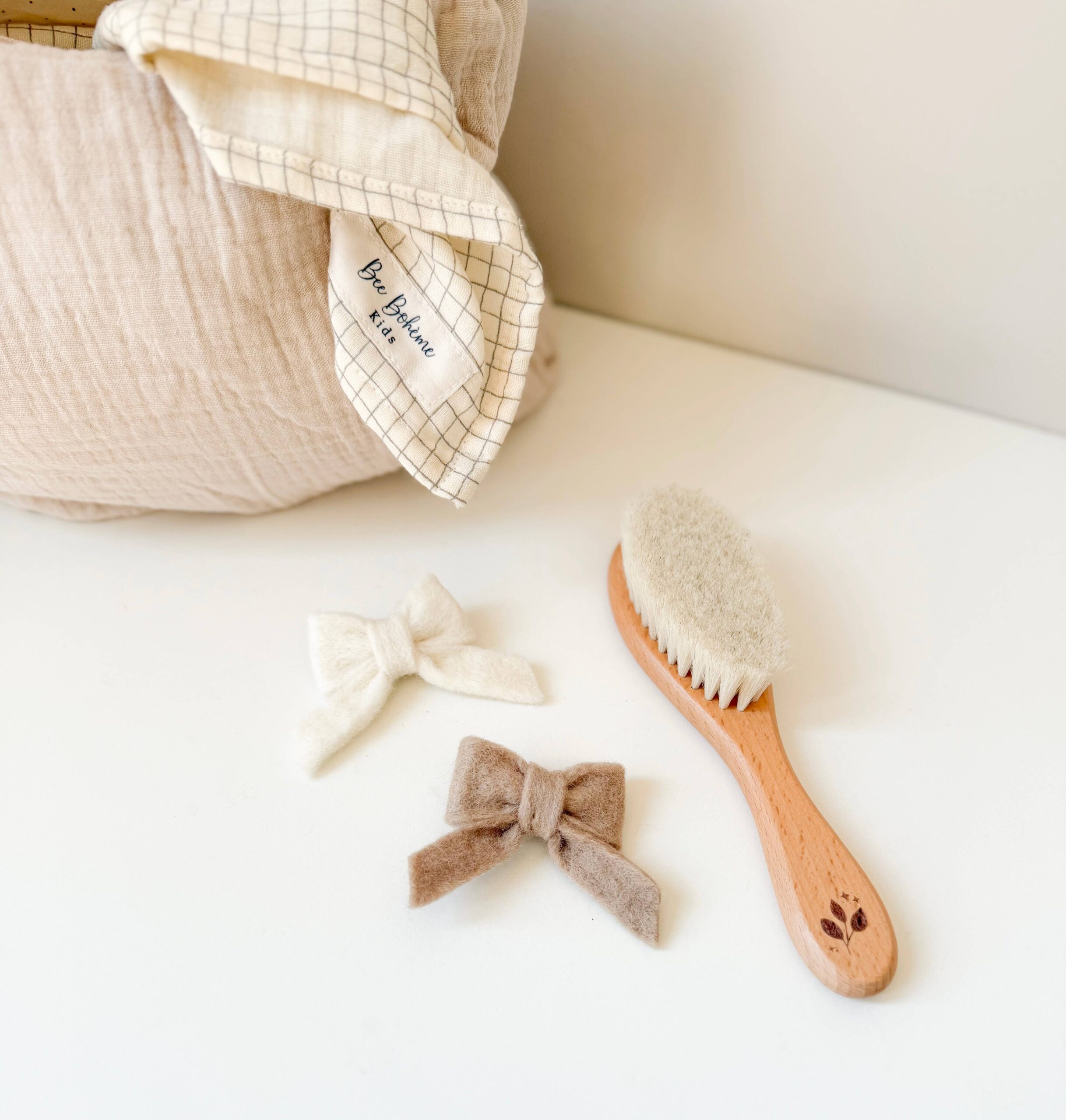 This lovely duo of felted wool hair clips will add a touch of softness and elegance to little girls’ hairstyles. Carefully handcrafted, these felted wool bows are attached to a crocodile clip for optimal hold without pulling the hair.