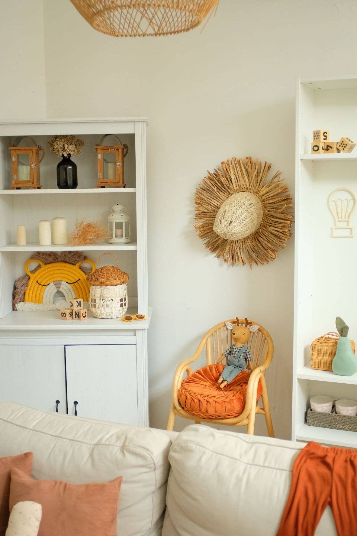 The Mushroom Basket…Perfect handmade boho piece that could be used as a piece of decor or a magical home for your peg dolls, fairies, gnomes, animals or any other little creatures. It could also be a storage basket for your nursery, any bohemian style space, cottage or beach house.