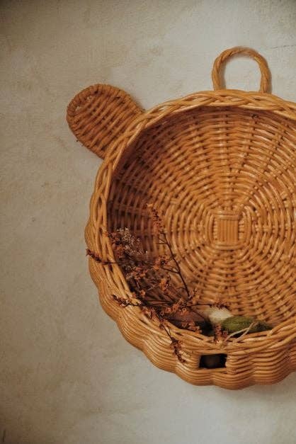 A beautiful handmade Rob Basket – Bear basket for small items. to store the blocks here or just to hang on the wall for your kids nursing deco