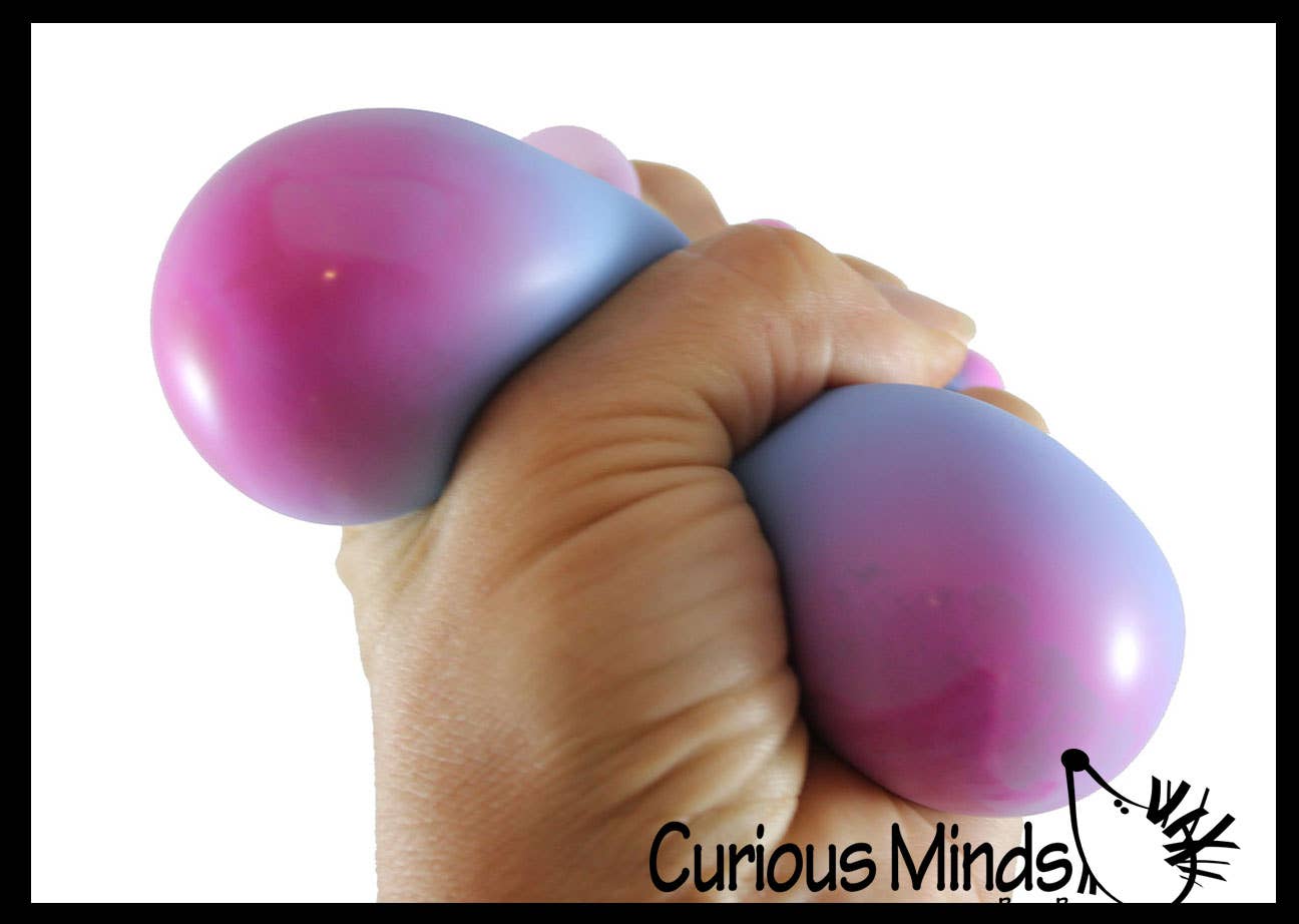 1 RANDOM COLOR – This soothing sensory ball is so cool it is like magic. The ball is filled with a thick doh like material that is a different color from its flexible skin. When you squeeze the ball the interior color shows through making it change colors! It is beautiful to watch as the colors blend together to make a two-tone ball. 3 color options – Pink to Purple / Yellow to Orange / Blue to Pink.