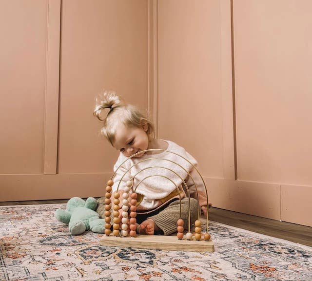 Beautifully designed with natural hues and a playful boho rainbow pattern, this abacus perfectly compliments gender neutral nurseries and playrooms. Add a stylish touch with this multifaceted piece that marries nursery decor, playroom enhancement, math and hand eye coordination. A boho chic STEM toy kids of all ages will love.