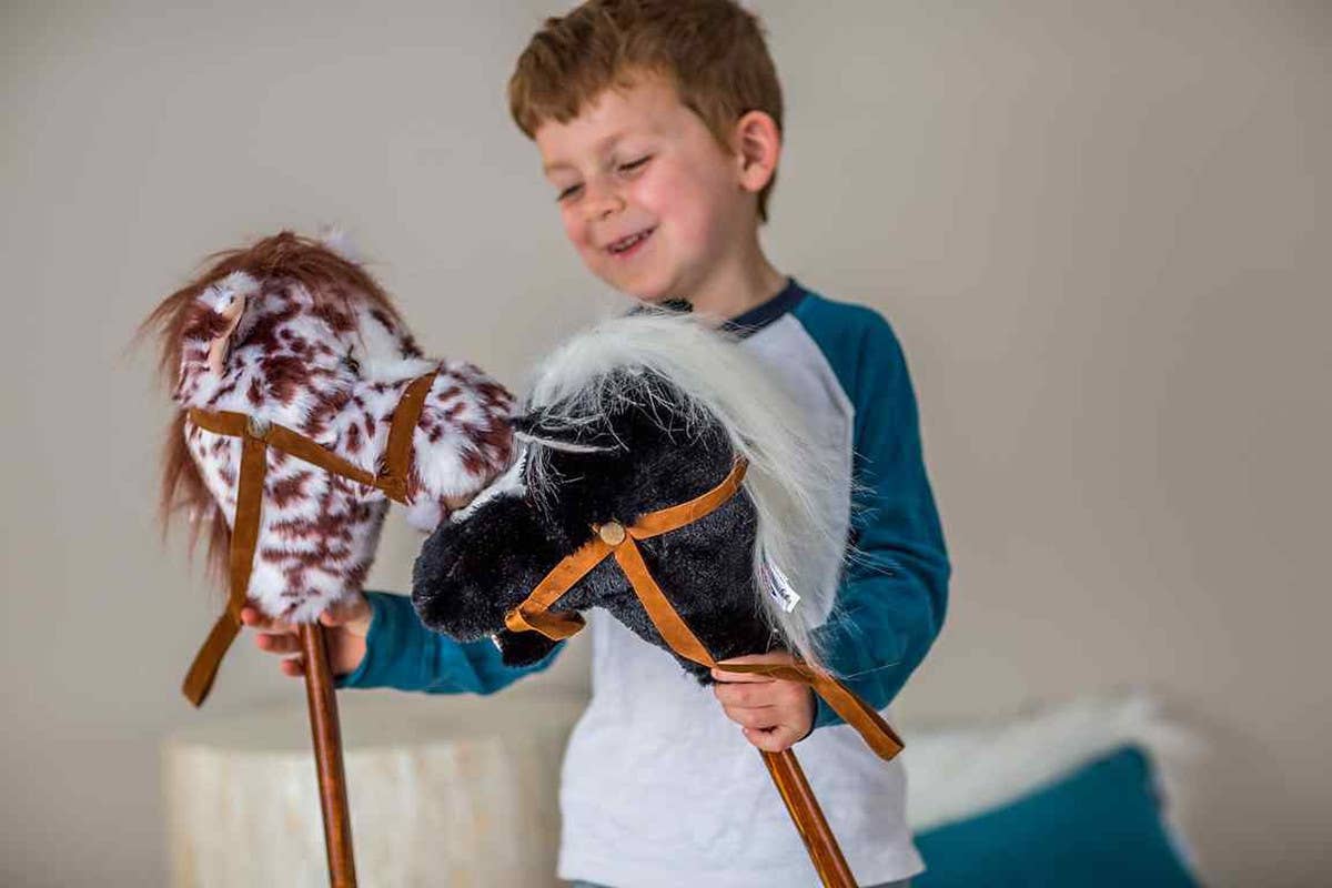 Stick horses have been amongst our most popular toys since Mary Meyer introduced the in 1963. Now a classic, the real wood stick is super sturdy. Easy Ride’Ums neigh when the ear is pressed.