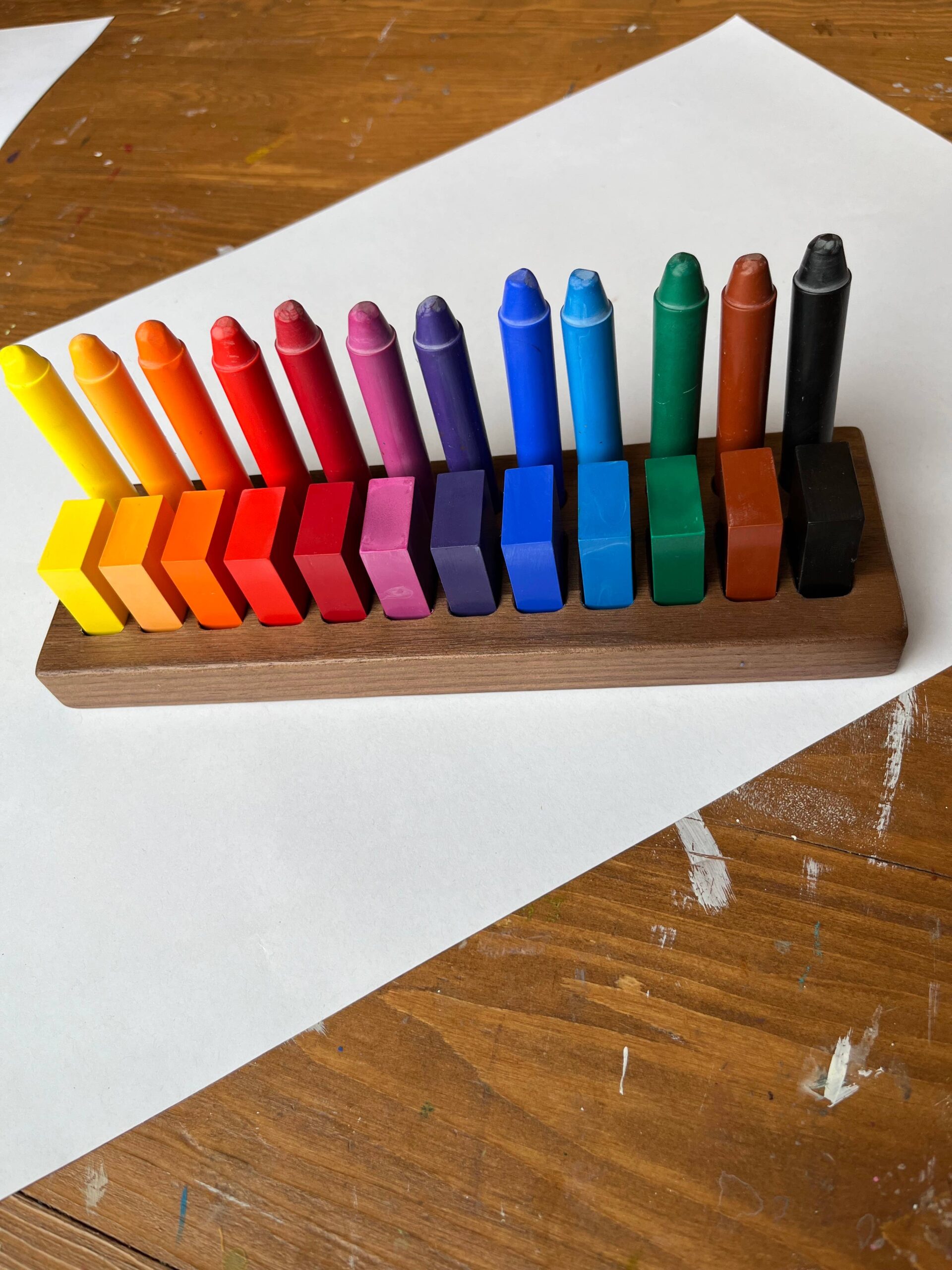 Made from beautiful Walnut. This crayon holders fits Filana as well as Stockmar 12 sticks & 12 blocks. (crayons not included)