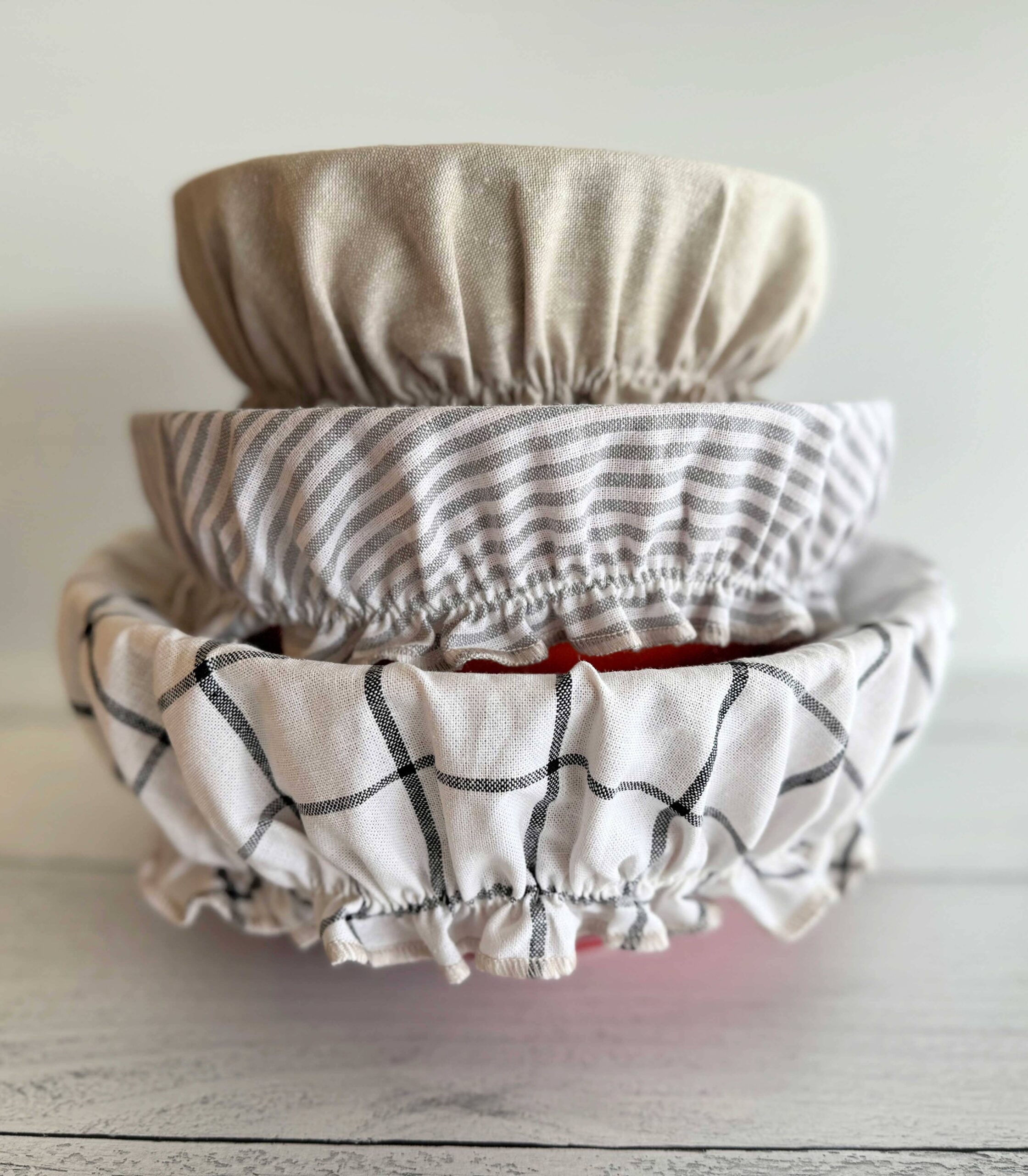 We love of our reusable bowl covers! They come in a set of three in three sizes- perfect for making bread, covering a salad to be served later, cookies to bring to a neighbor, a small bowl of nuts. Also great as a kombucha cover. The large also fits over a casserole dish.