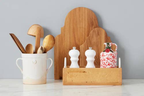 This large wooden ladle is the perfect addition to your assortment of kitchen tools. Designed for scooping soup, sauces, and batter. Each ladle shows natural variations in wood grain, making each tool unique.