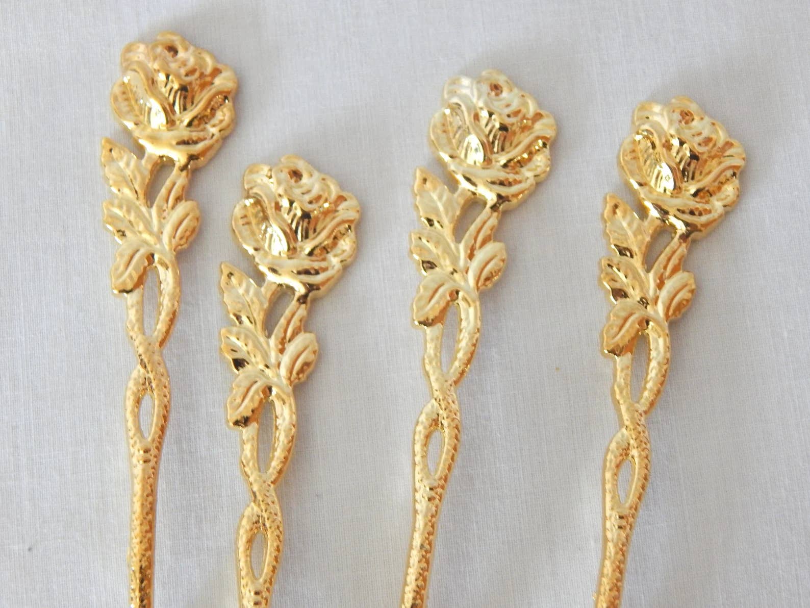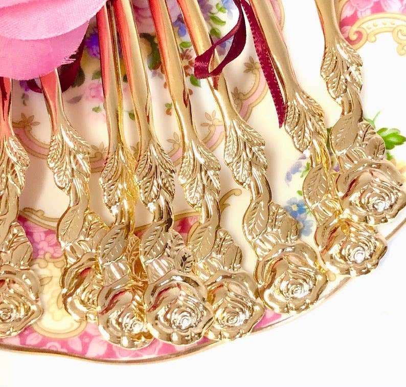 Gold Plated spoon with rose handle that measures 4.25″