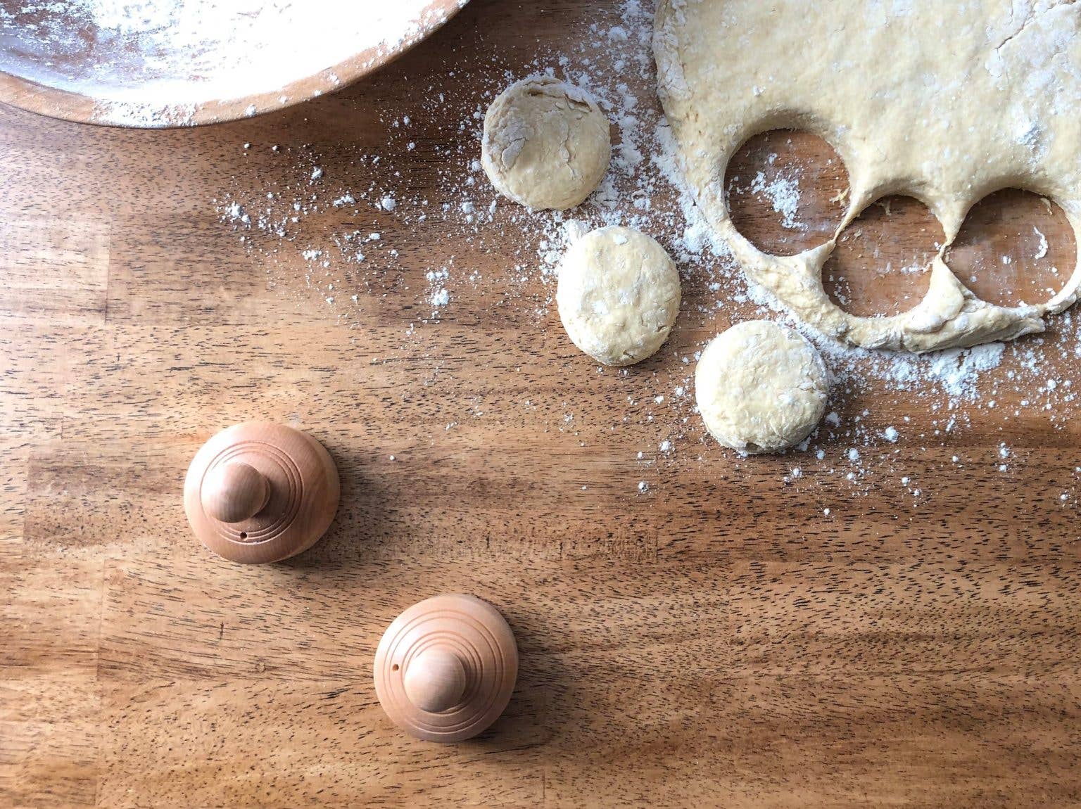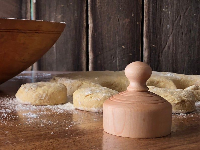 We turn our Biscuit Cutters one at a time by hand from locally sourced Maple. Approximately 2 1/4″ in diameter and deep enough to accommodate the thickest biscuits. Also great for cookies! our design incorporates an air hole for easy release of the biscuit.