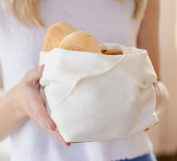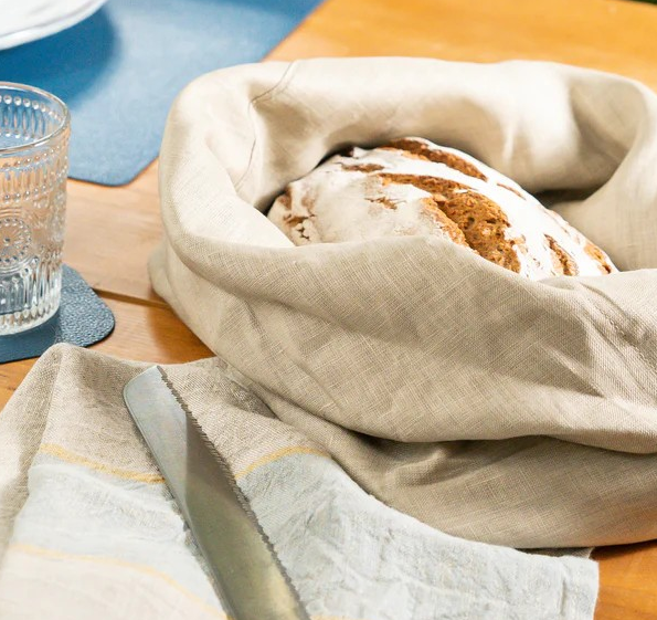 This quintessential bread bag is made from Italian linen and adds a stylish element to your table while storing rolls, pastries and breads. The Fiocco bag is also functional and practical for storing food in the fridge such as cheese, fruits or vegetables. Use it as a lunch box to take to the office, to the park, or to the beach as well. This bag will also work well to keep bread fresh for longer. Your bread needs to breathe as it naturally has a high moisture content. If it is kept in a sealed container it will soon get moldy, however a linen bread bag helps to stop this. It’s washable and re-usable. Turn the top of the bread bag down to make a pretty basket, perfect for serving bread and rolls at the table. Make a knot to close the bag and keep the bread fresh.