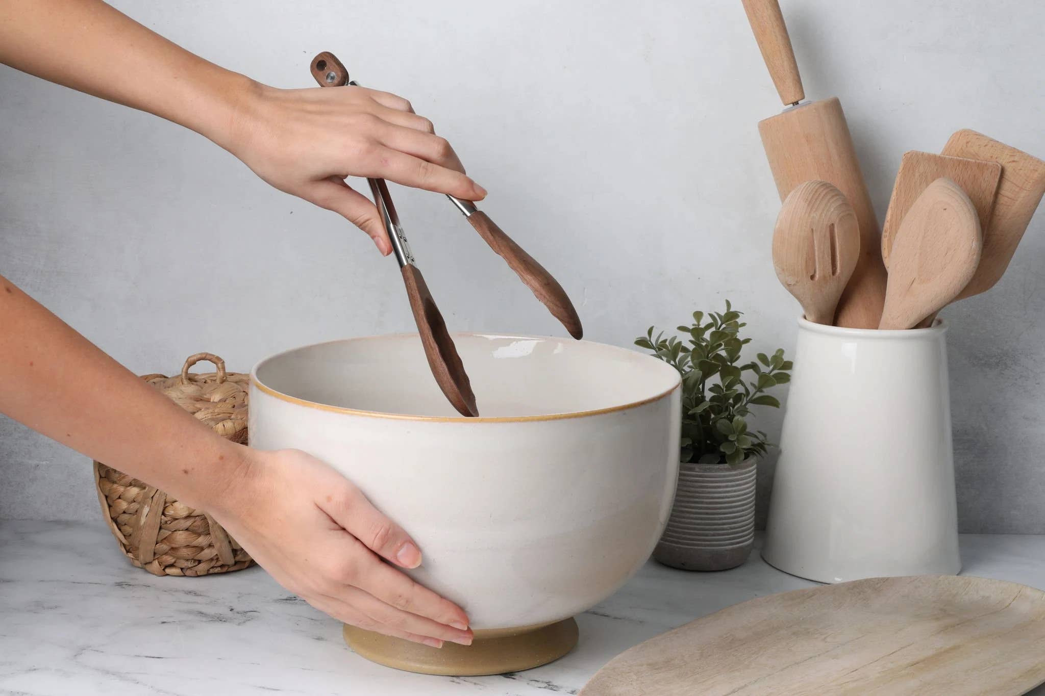 Our olive wood and stainless steel tongs are the epitome of elegance and functionality. From tossing salads with precision using wood salad tongs to flipping and serving with wood cooking tongs, this set of kitchen tongs is a must-have for any culinary enthusiast. Whether it’s for everyday cooking or special occasions, these serving tongs elevate your kitchen experience.