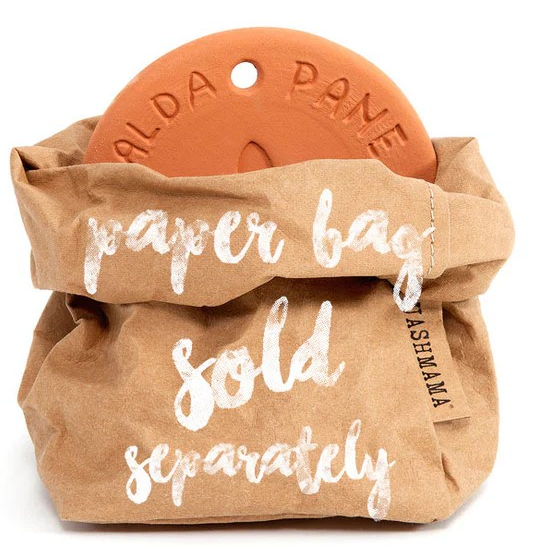 Scalda Pane translates to “warm bread.” This terracotta heat plate is designed to be warmed in the oven and place inside your tabletop bread bag/bread basket to keep your rolls, bread and pastries warm on the table. Place in the oven for 15 minutes at 350 degrees F and then place in the bottom of your bread bag. One plate will warm all standard size UASHMAMA paper bags (small, medium & large). You can also insert into the Porta Pane bag or the Linen Fiocco bag.