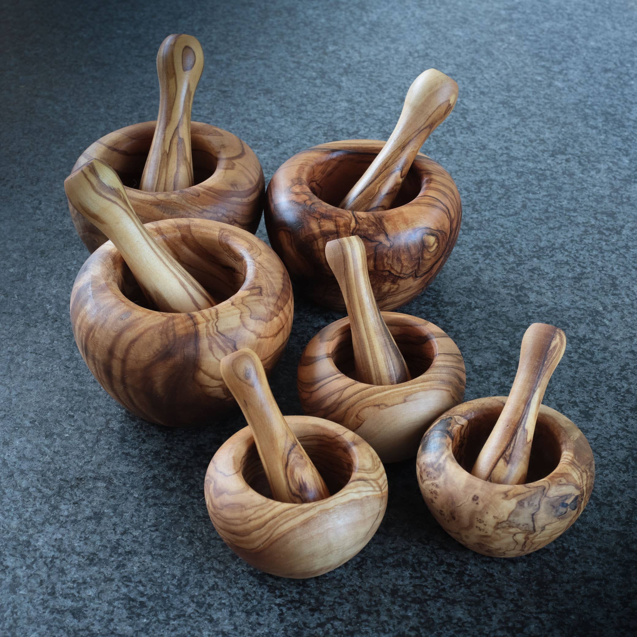 Introducing our Olive Wood Mortar and Pestle, featuring stunning natural wood grain, perfect for grinding and mixing herbs, spices, and both dry and wet ingredients for cooking or crafting cocktails. Enhance your entertaining or daily culinary experiences with its functional and stylish design.