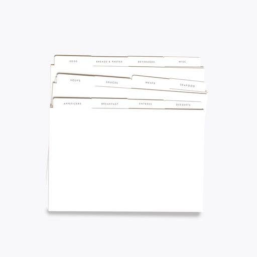 Bring a little cheer and charm to your kitchen with our floral Recipe Tins. Each box features a gold metallic interior, a gold-framed label on the front, and includes 24 recipe cards and 12 recipe dividers.