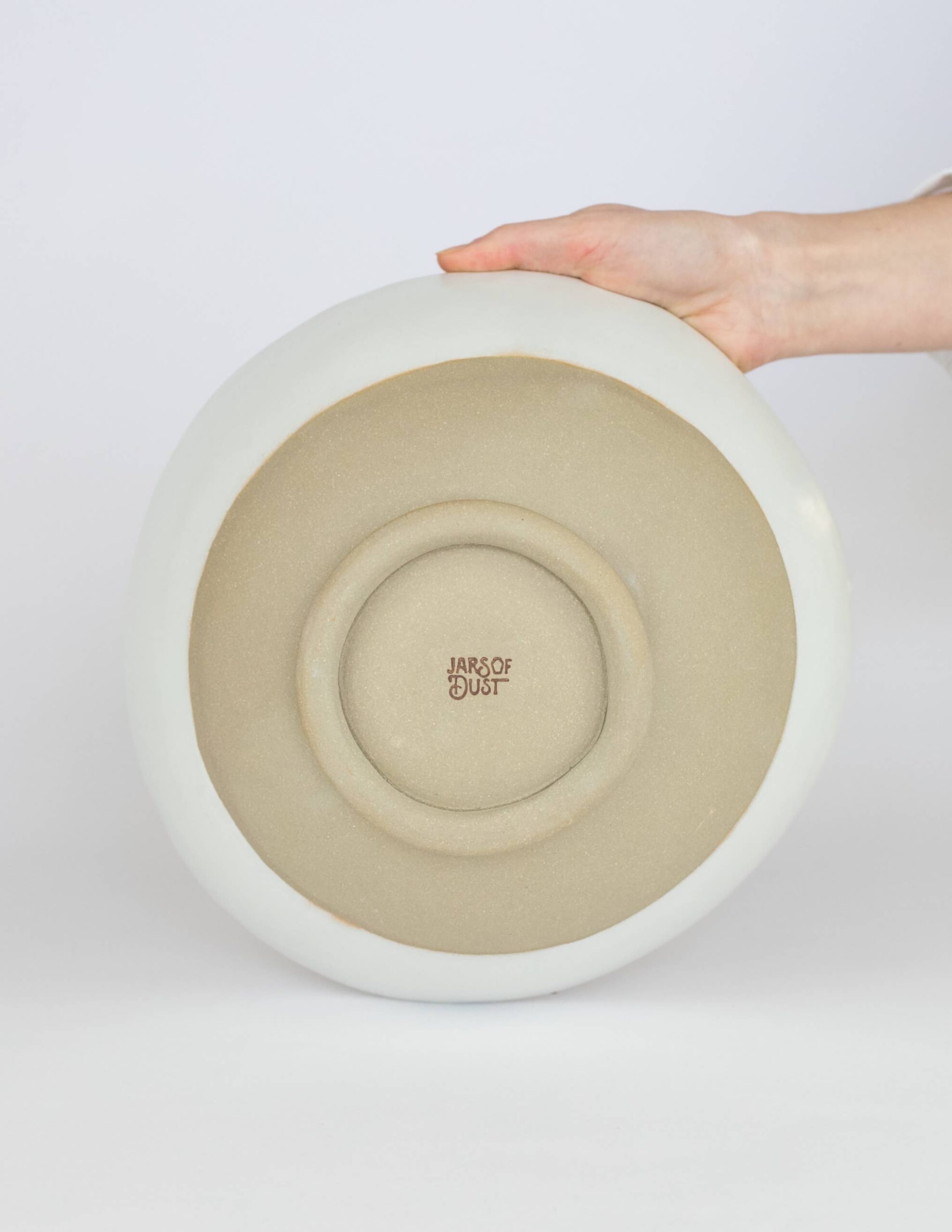 All Jars of Dust pieces are handcrafted with great care in our Virginia Beach, VA studio from start to finish. Every item is food, microwave and dishwasher safe. Due to the handmade nature of our products, slight variations in size and shape will occur from piece to piece.Specifications: