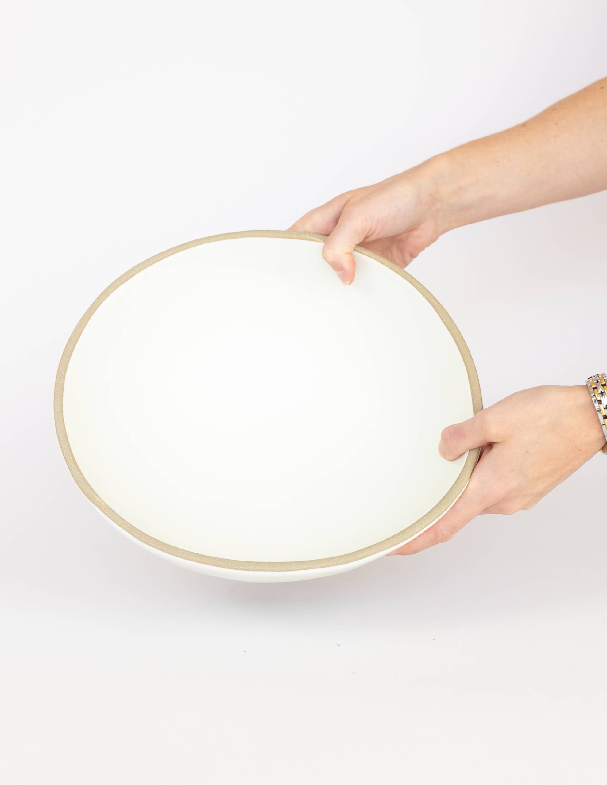 This Extra Large Bowl has a small foot around the bottom, ensuring steady placement on your table or counter and ease of stacking. The all-in-one mixing bowl, serving bowl, salad bowl, whatever your heart desires bowl!
