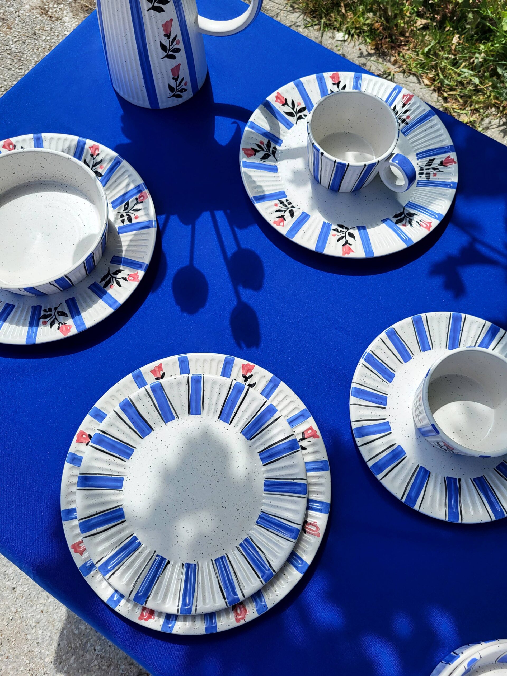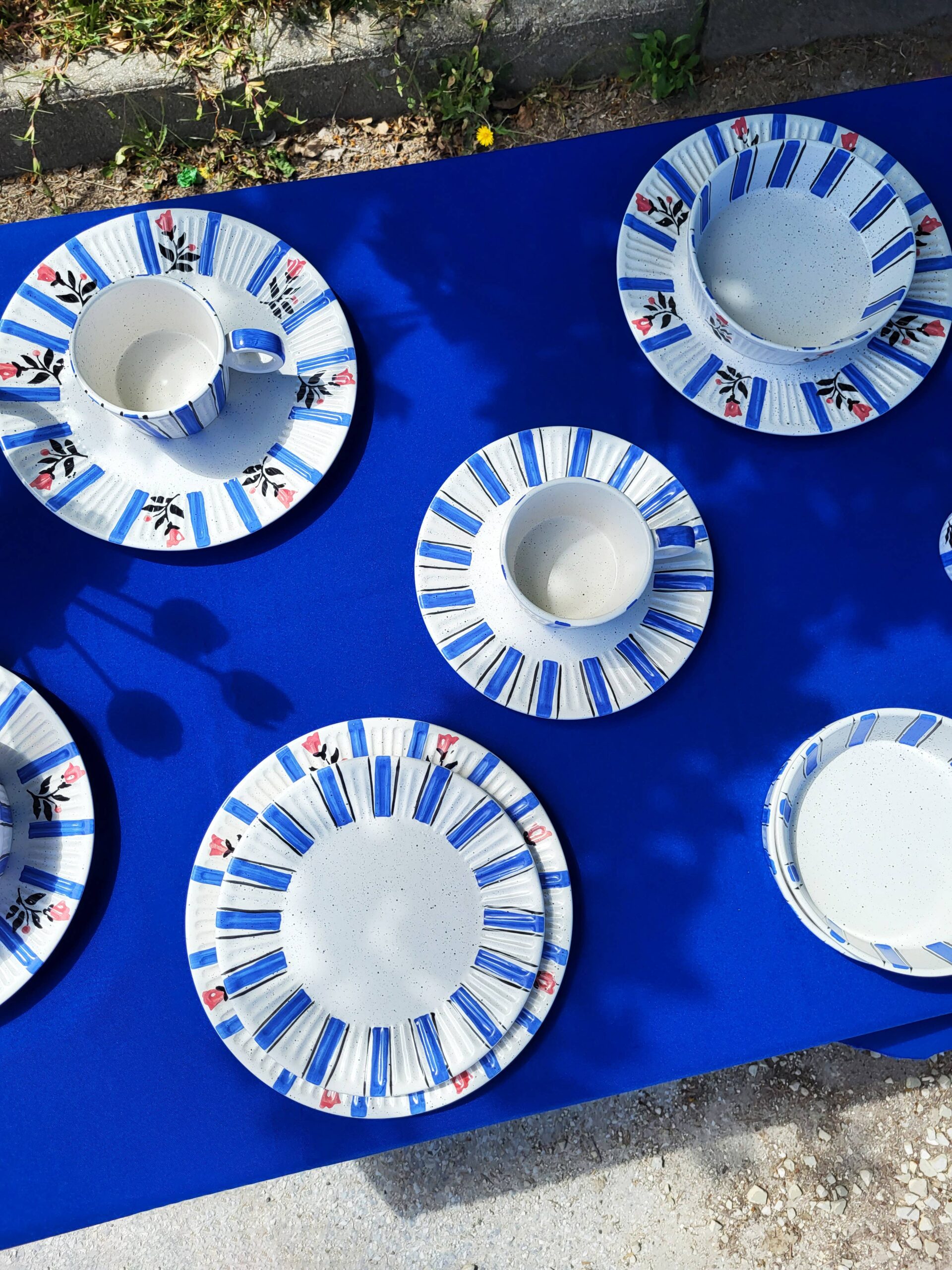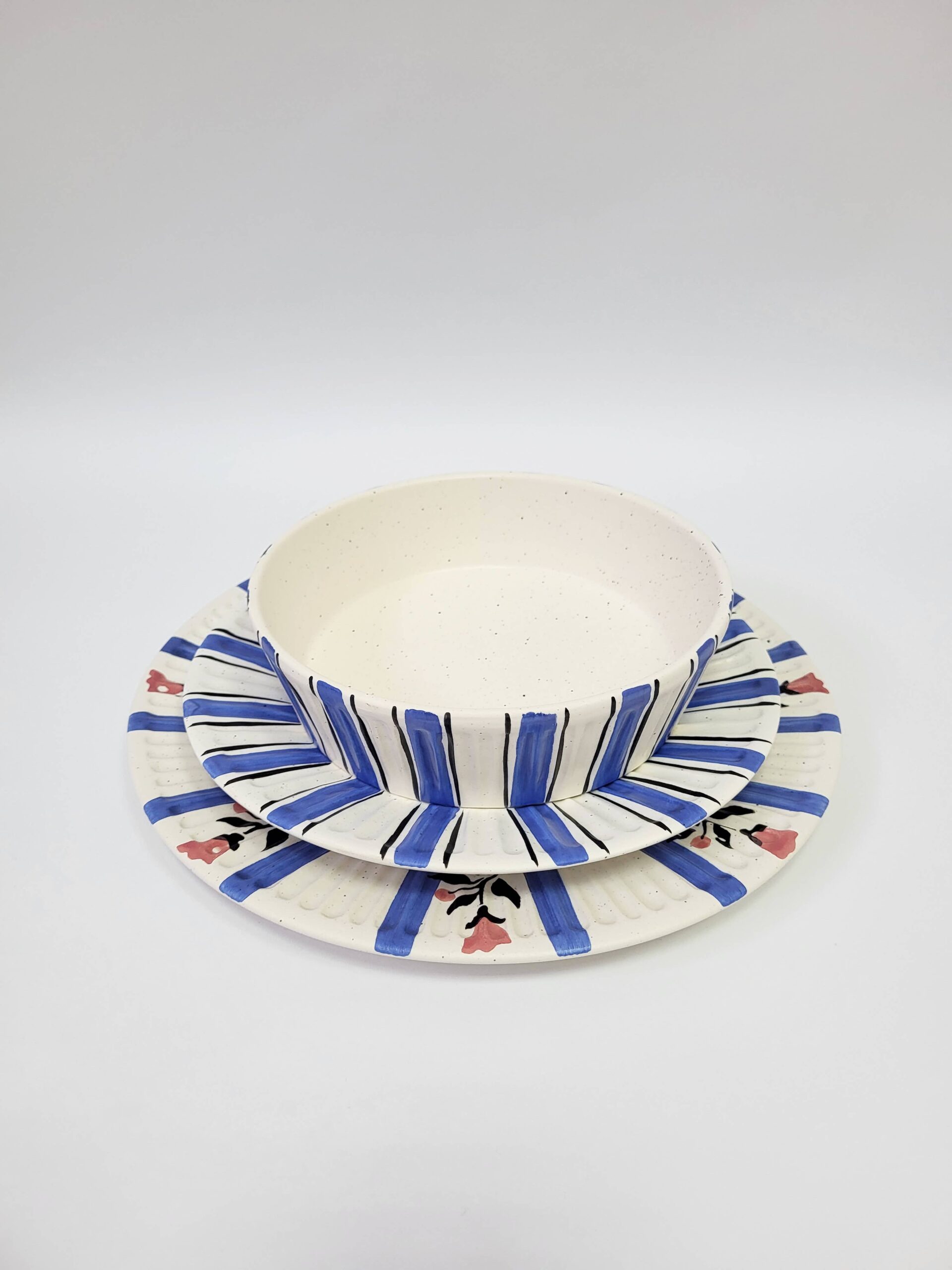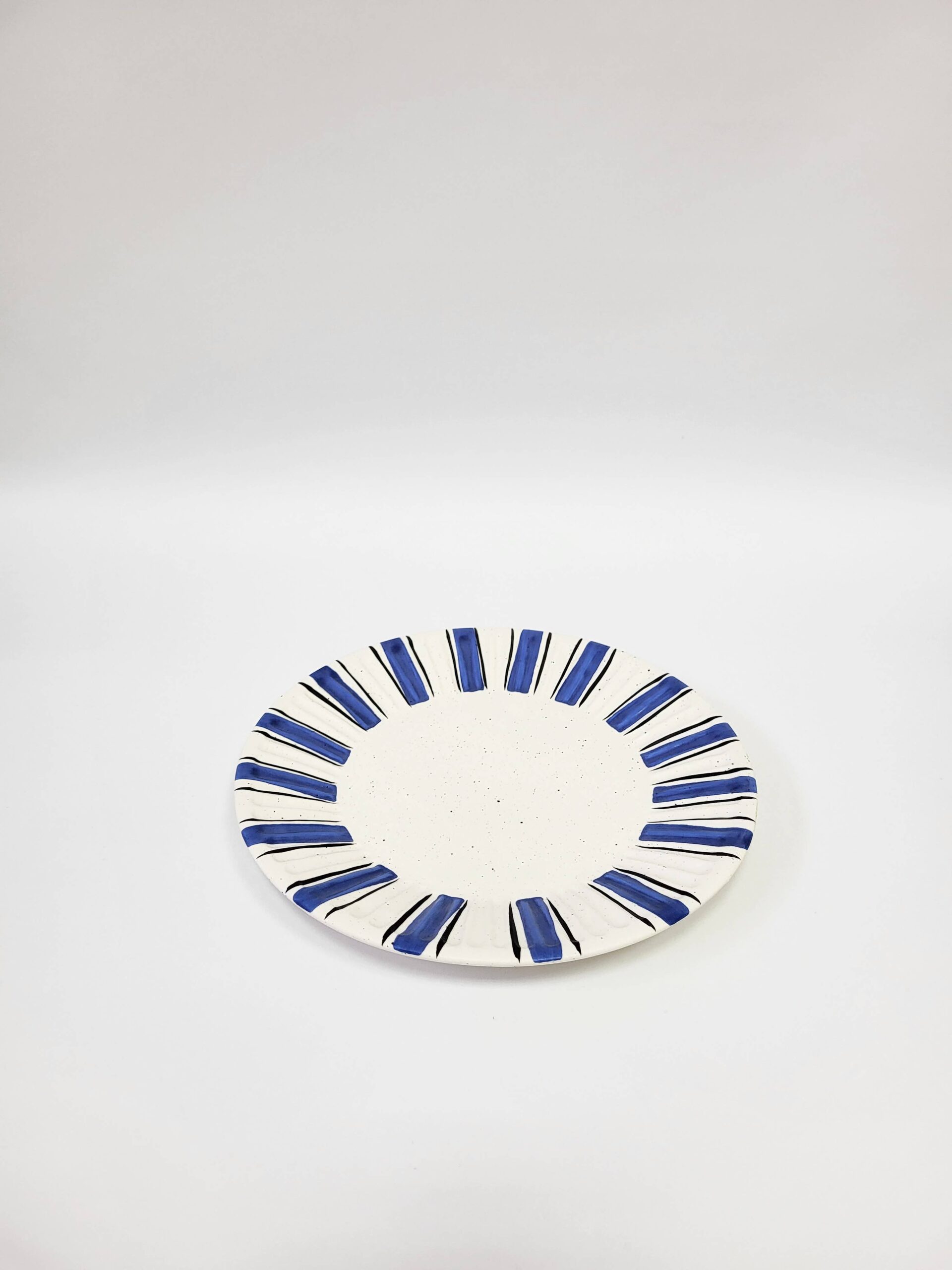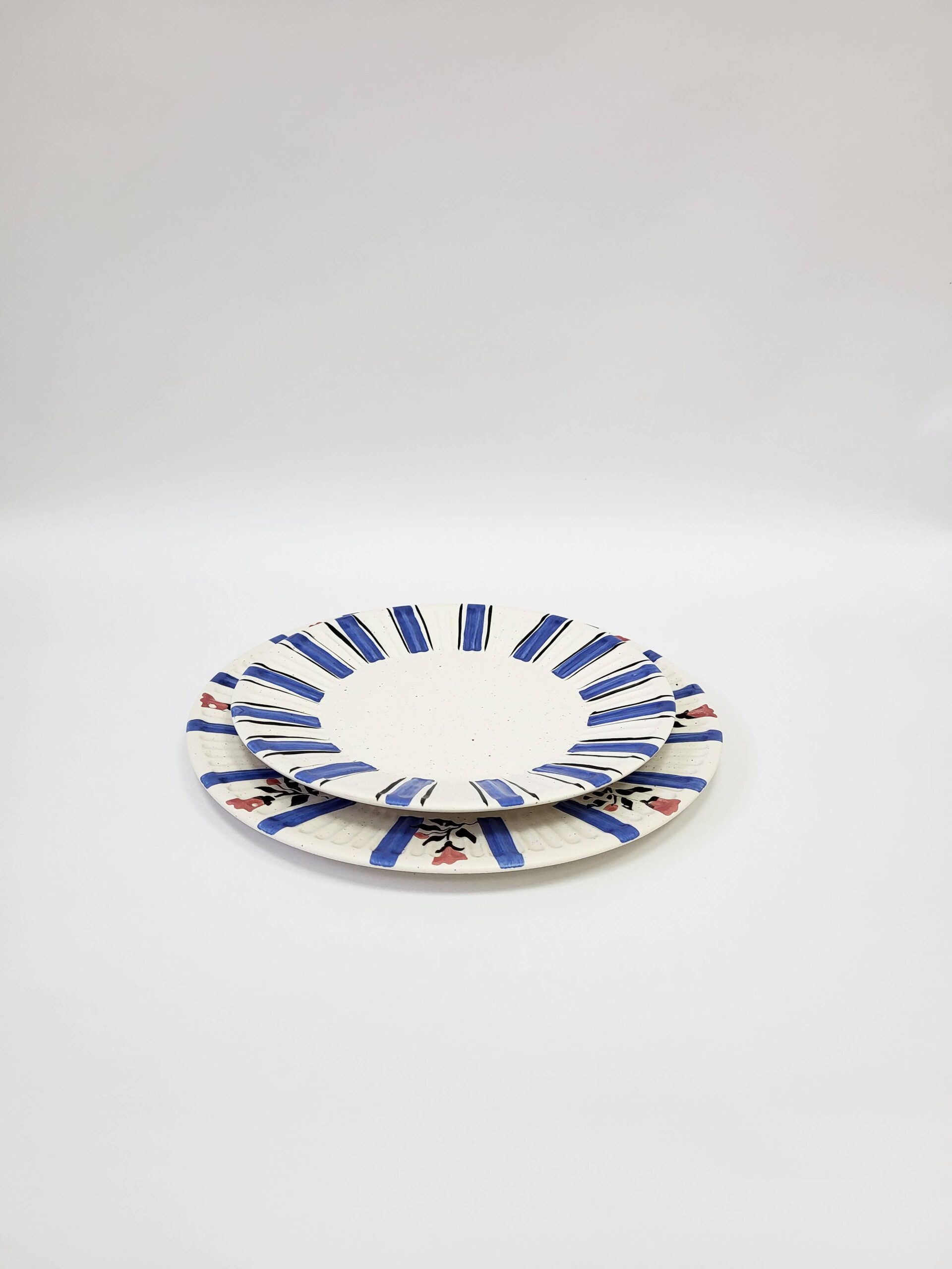 Hand-painted Tália Dessert Plate Stripes with “Pombalino” inspired decoration. Set of 4.