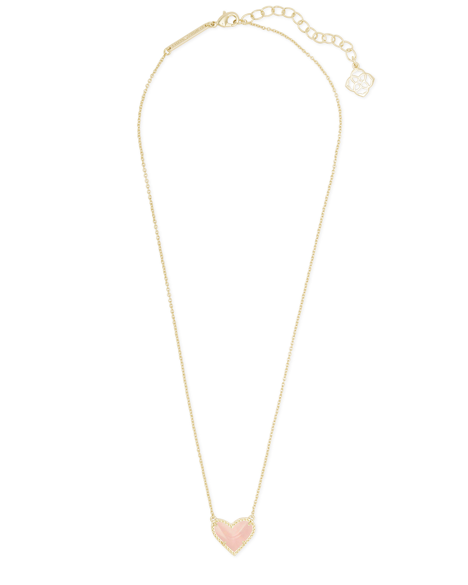 ARI HEART SHORT PENDANT NECKLACE GOLD ROSE QUARTZ
