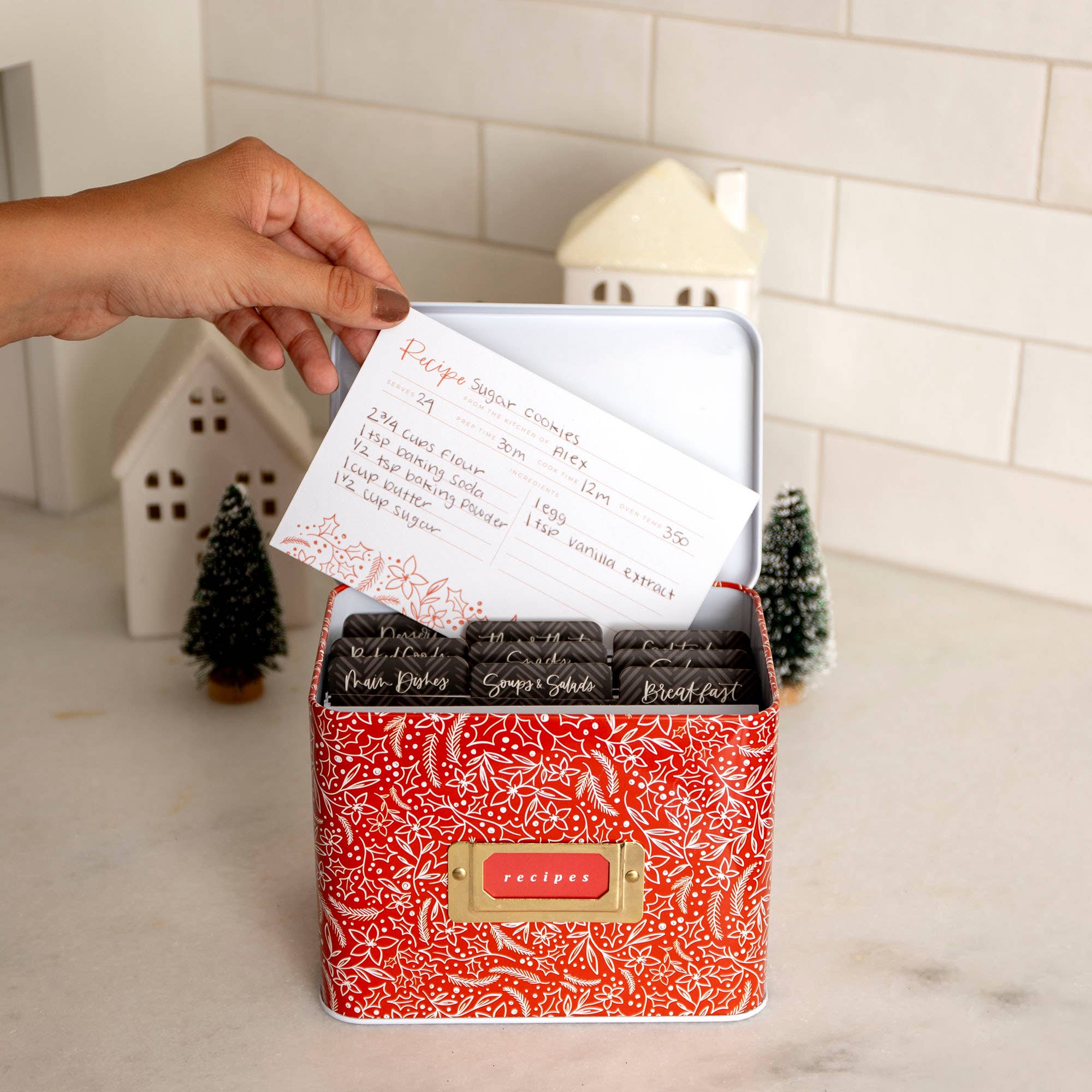 Organize your cherished recipes this Christmas with our Holiday Floral Tin Recipe Box! This festive red recipe box is the perfect addition to any kitchen and a beautiful way to store and organize your favorite dishes. With a capacity to fit up to 250 recipe cards, this box is ideal for collecting family recipes and preserving cherished traditions. Whether you’re passing down recipes from generation to generation or starting your own, this box provides a timeless way to keep your most loved recipes. Perfect for holiday gifting, this recipe box is a thoughtful present for home cooks, food enthusiasts, and anyone who loves to share the joy of cooking with others. Whether it’s for a friend, family member, or hostess, this box is sure to be cherished for years to come.