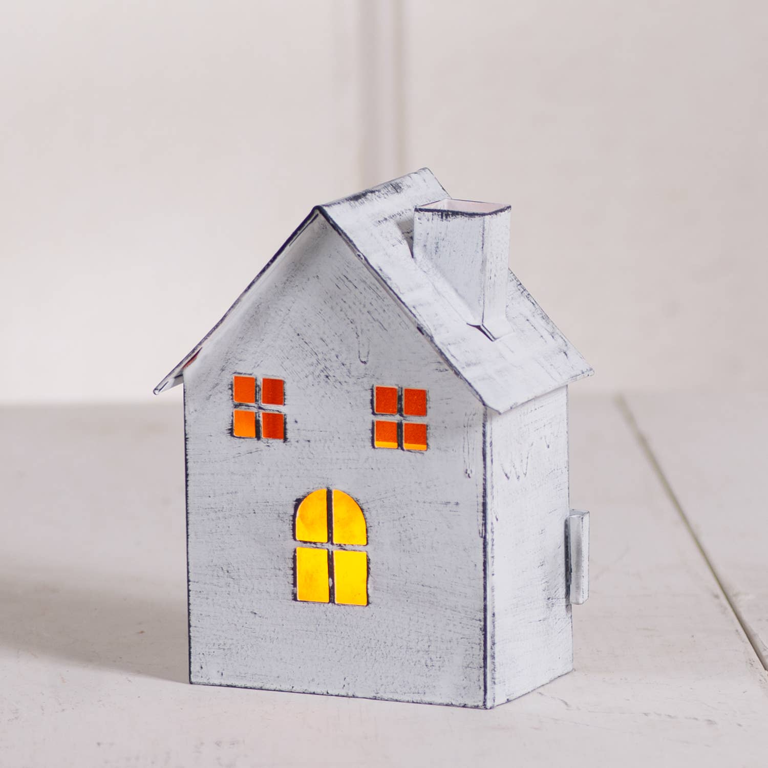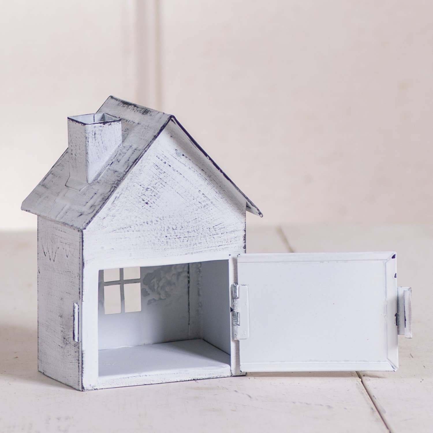 Irvin’s Tinware – 6-Inch High Tin House Tealight Holder in Rustic White Wash