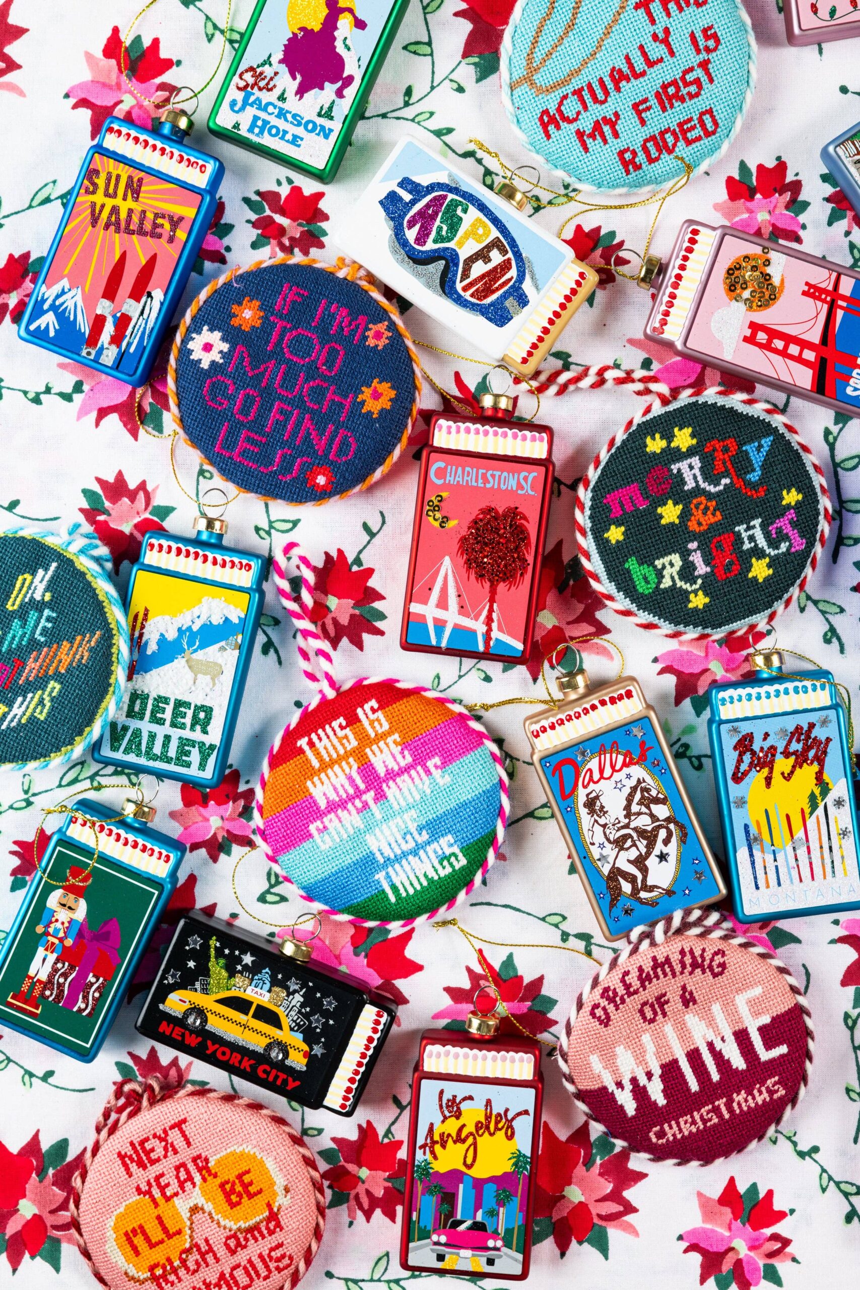 Take your holiday decor from trad to rad with Furbish’s curated assortment of festive AF needlepoint pillows, ornaments, tree toppers, stockings, and tree skirts.