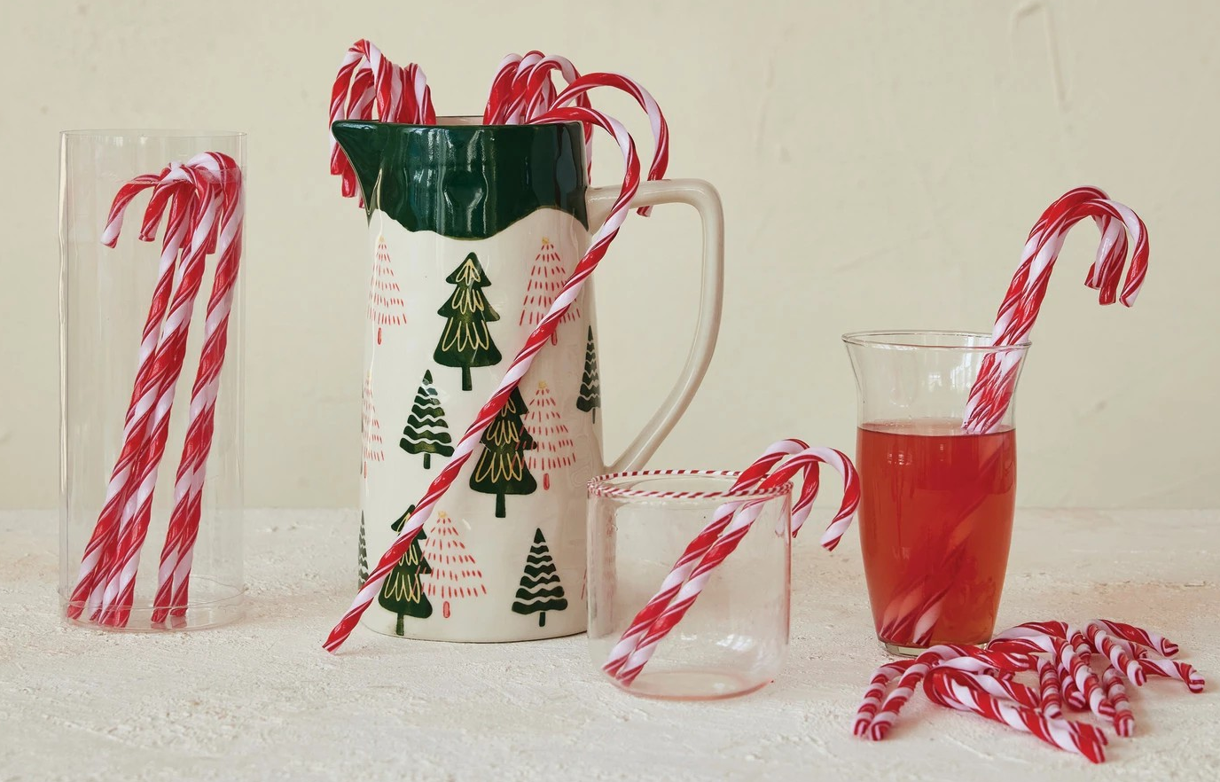 5″H Plastic Candy Cane Drink Stirrers w/ Stripes, Red & White, Set of 10