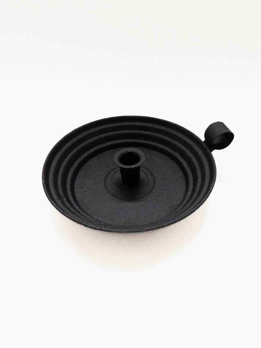 A design that has stood the test of time, this round candlestick holder fits beautifully with our hand-dipped taper candle collection. Its textured black finish complements any decor. Made in Pennsylvania with a handle for easy carrying.