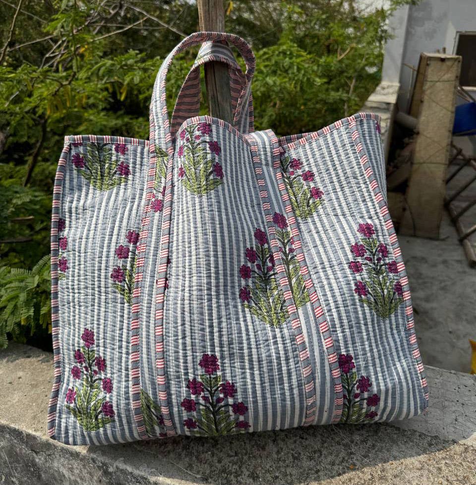 Indian Screen Printed Cotton Quilted Women’s bag from Rajasthan India. This handbag is completely Indian printed on good quality cotton. Cotton quilted travel bag made by Indian Artisans, This cotton quilted shopping bag is totally unique and multi purpose. Use this for your grocery or as a travel bag. Perfect to suit everyone. Item :- Cotton Handbag SIZE MEASURES:: Height: 18 INCH Width: 18 INCH Handle: 11 INCH Gusset: 5.5 INCH Pocket – Inside Material: Cotton Technique: Quilted Pattern: Floral Print Style: Wash Care :- Dry Clean.