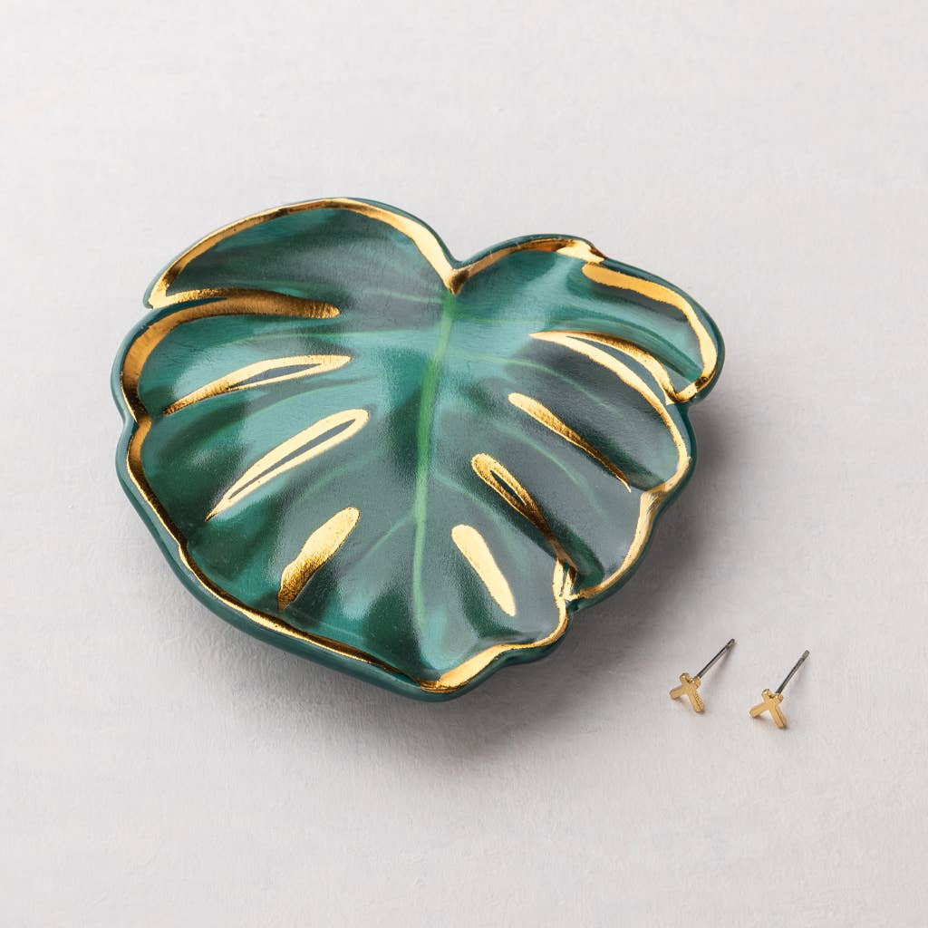 •Set includes a ceramic jewelry dish & a pair of 14K gold dipped earrings.
