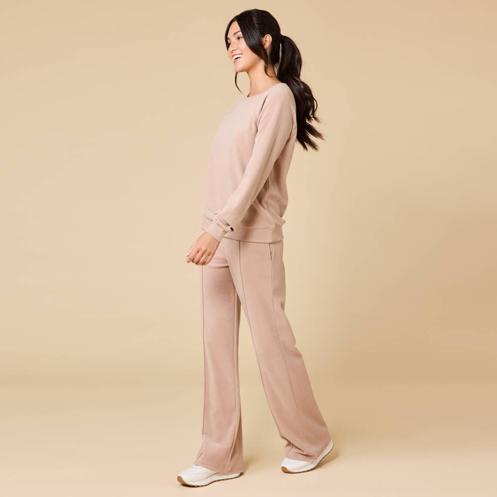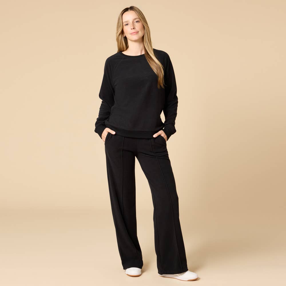 Vintage Velvet Raglan Crew Neck with Pintuck Wide Leg Pant: Coco, XL